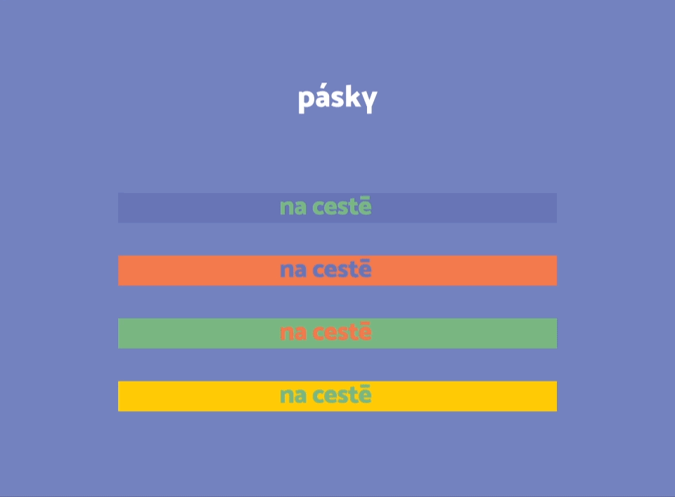 Vizuálne identita festivalu na ceste v mojom podaní buduje na spojení slov „festival“ a „na ceste“, kde som našiel spoločné písmená „est“. Tento prvok som sa rozhodol využiť v tlačovinách, kde by sa slovo „festival“ tlačilo cez slovné spojenie „na ceste“ parciálnym lakom, a tým sa vytvoril zaujímavý a jedinečný efekt, ktorý by potencionálne mohol zaujať návštevníkov festivalu. Ako ďalší prvok by som uviedol jednoduchú ale pestrú pastelovú farebnosť festivalu, ktorá reprezentuje študentov a ich pestré vnímanie. Túto farebnosť som sa rozhodol využiť naplno, a to vytvorením rôznych farebných kombinácií pre tlačoviny.