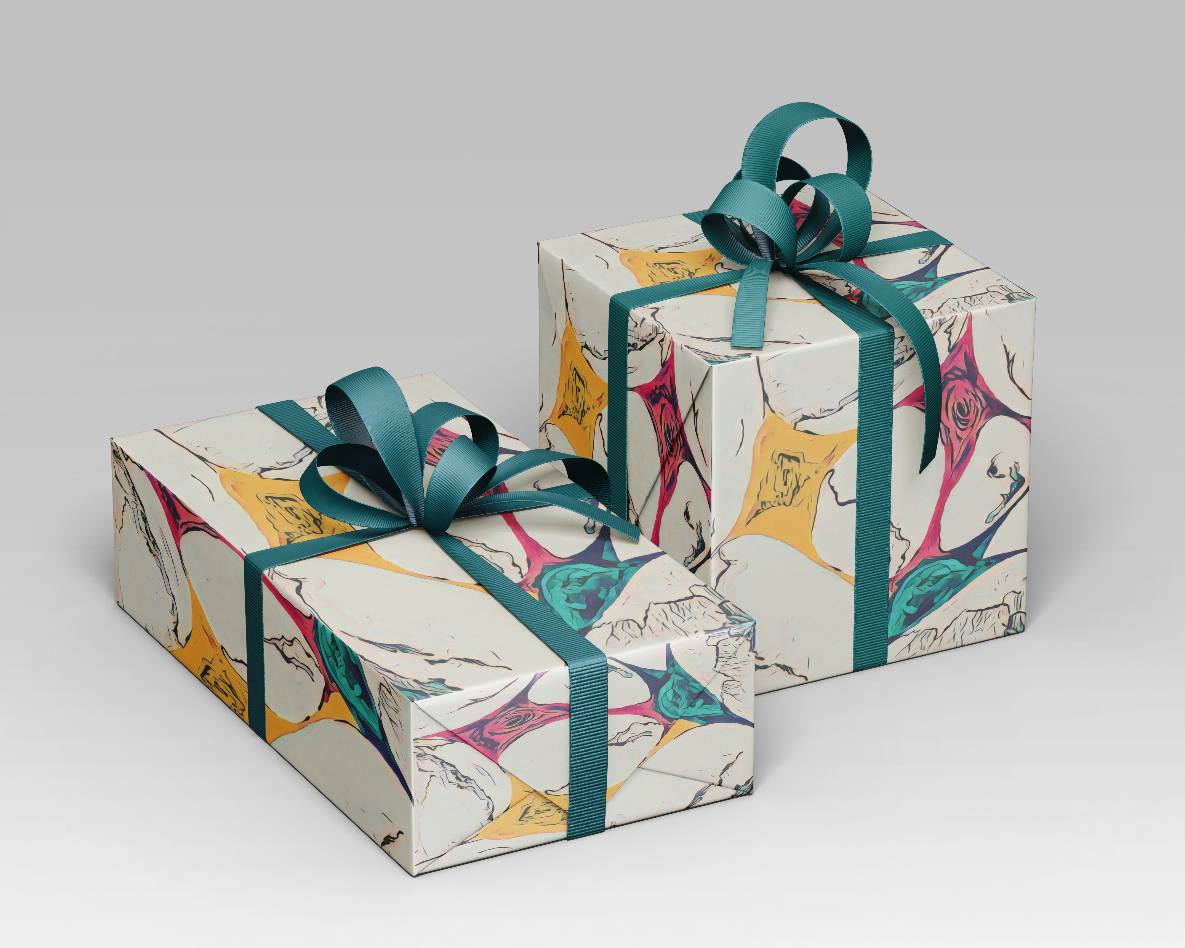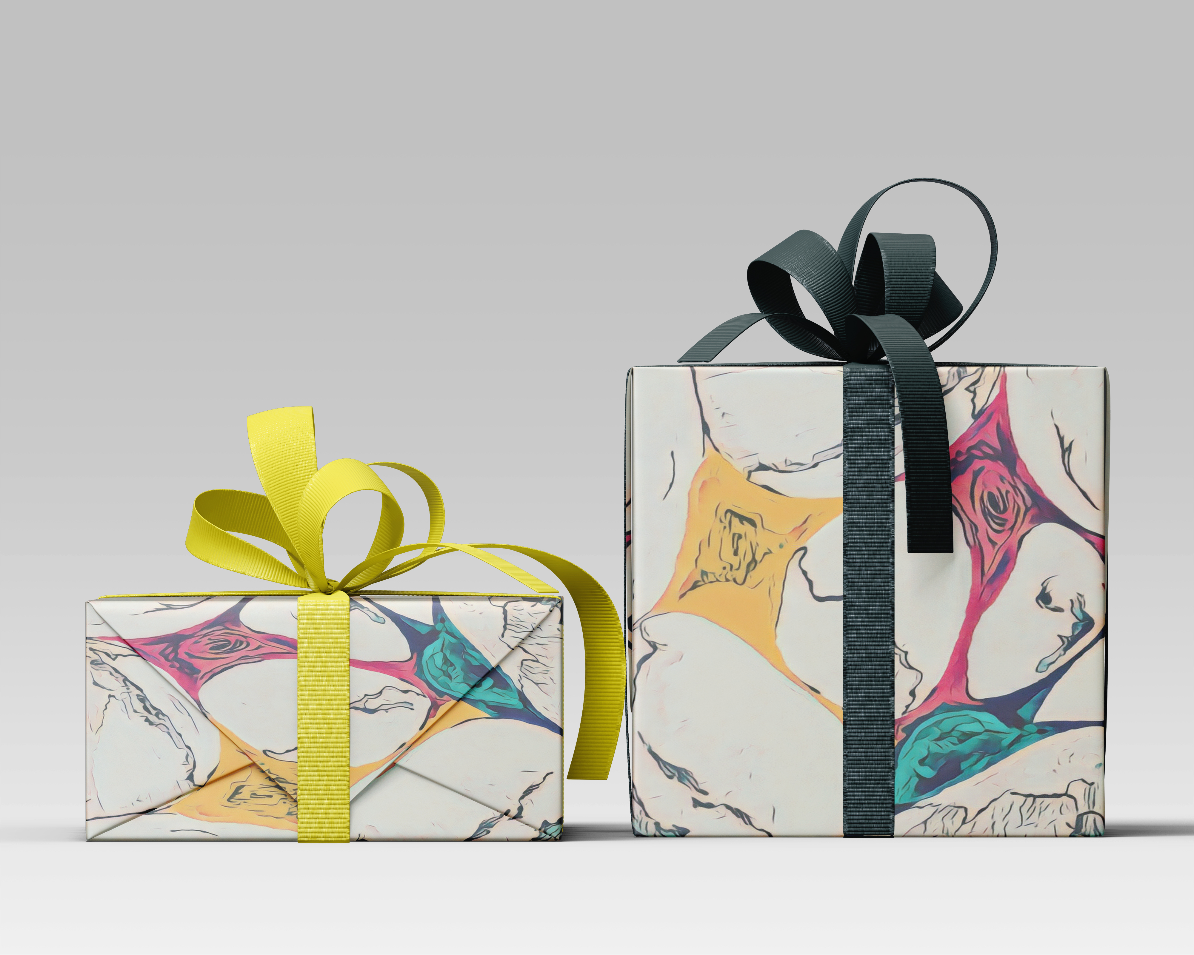 Návrh dárkového balícího papíru inspirovaný akvarelovou malbou.