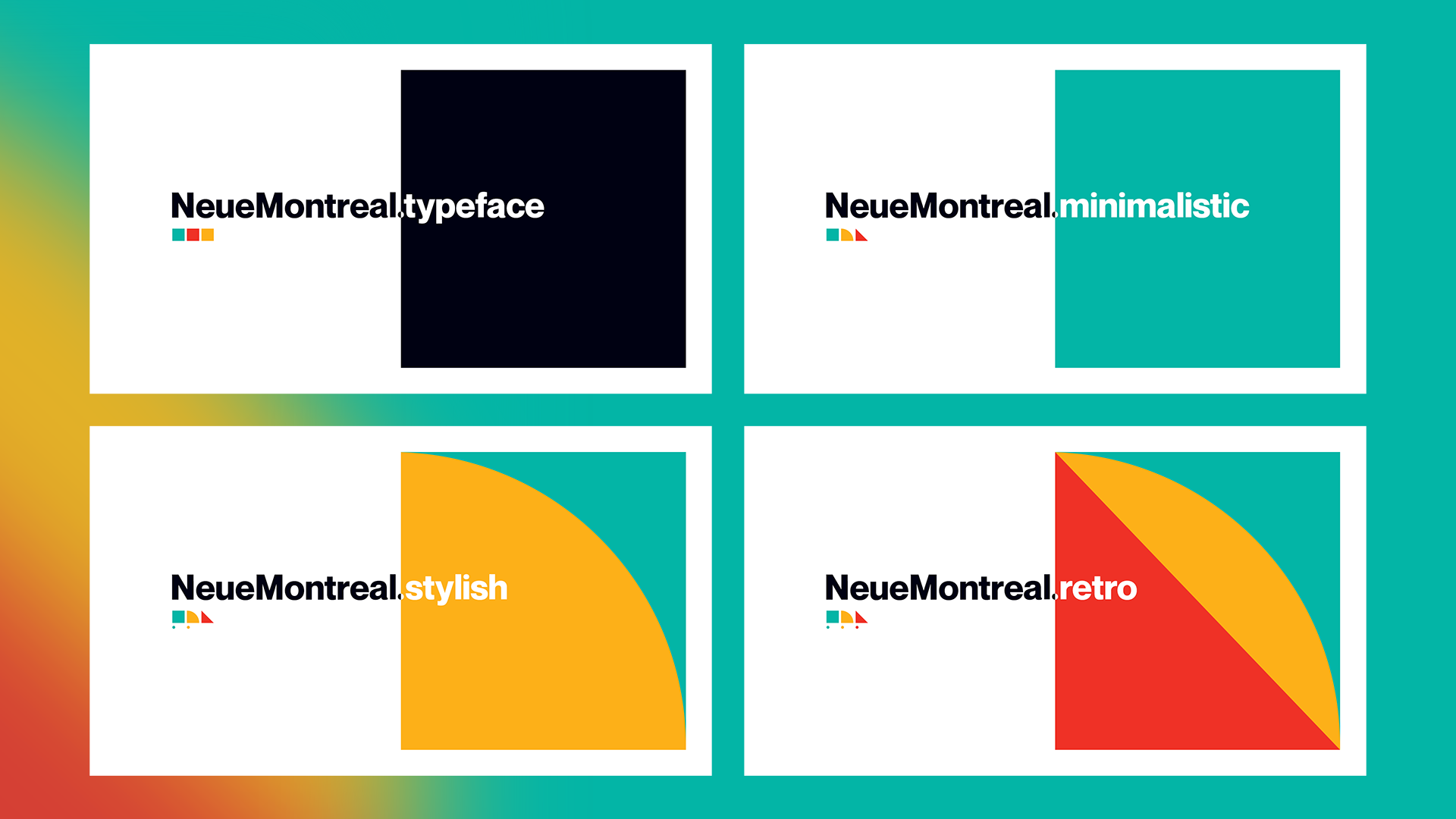 Vytvořil jsem jednoduchou microsite pro písmo Neue Montreal, k písmu švýcarského stylu jsem se snažil vytvořit identitu pomocí jednoduchých tvarů a přesné barevné palety. Při vstupu do microsite, je animace, s pro mne klíčovými slovy pro tohle písmo a "morphing" tvarů jako podpora hravosti