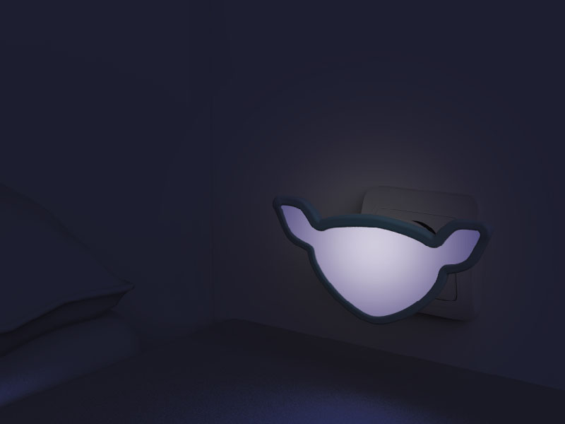 Zásuvkové noční osvětlení do dětského pokoje. Slouží jako orientační prvek ve tmě či jako „strážce“, který dává v noci pozor, když se dítě bojí tmy. Tvar vychází ze stylizovaných hlav a těl zvířat. Je velmi nekonkrétní z toho důvodu, aby si dítě samo vybralo, „kdo ho bude hlídat“ a rozvíjela se tak dětská fantazie. Hlavní část je vyrobena z plexi skla, které může být mléčné nebo s jakýmkoli motivem. Konstrukční část je vyrobena z plastu, aby se dítě nedostalo k elektronickým součástkám. Díky drážce v konstrukční části si dítě může se světlem libovolně otočit, bez potřeby vyndavat světlo ze zásuvky.