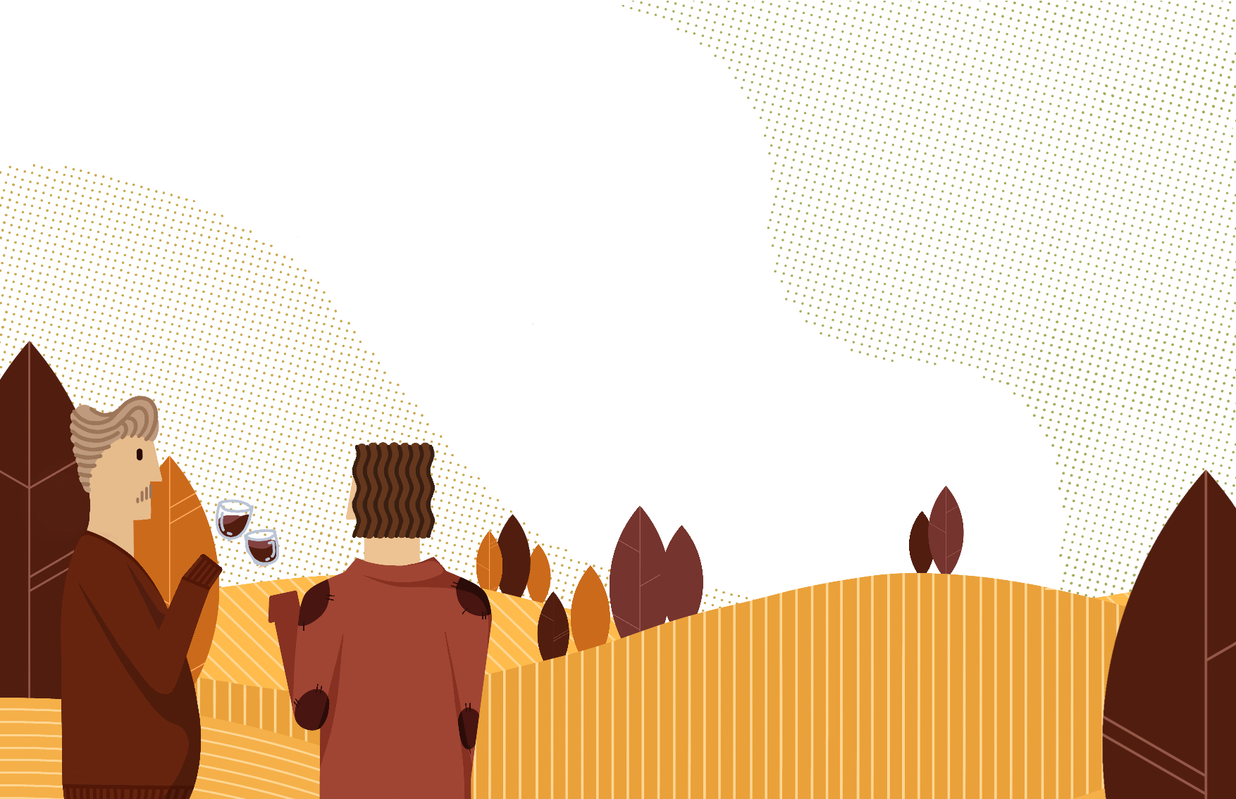 grafike zobrazujem polia s domom, ktorému stúpa dym z komína, táto grafika je určená pre cestovín fusilli. Druhá grafika je určená pre fettuciny. Na tejto grafike zobrazujem polia s dvoma pánmi pijúcimi červené víno, ktoré je hlavnou ingredienciou tejto sériie cestovín.