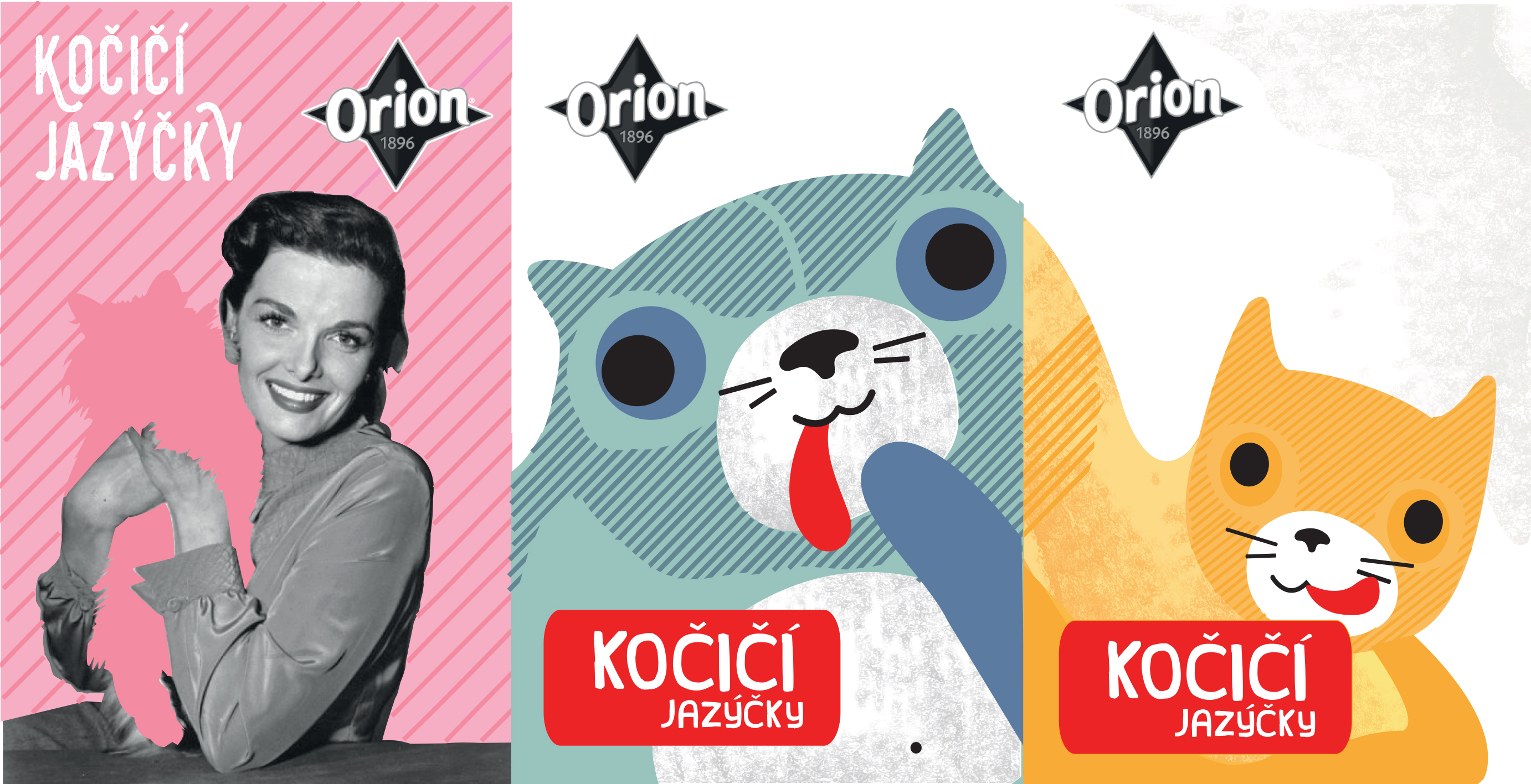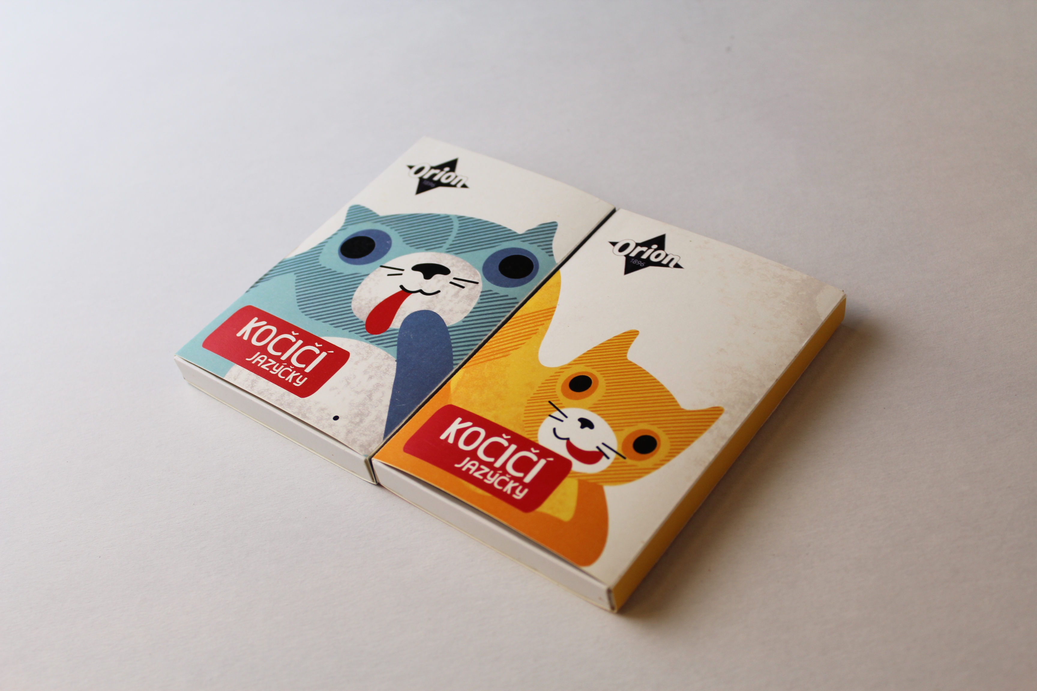Redizajn obalu ,,Kočičí jazýčky,, pozostávajúci z 3 obalov, dva detské ktoré sa napájajú a jeden retro pôsobiaci obal pre dospelých.