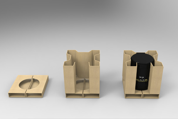 Papierový obal na objektív umožňujúci jeho bezpečnú prepravu a tiež vystavenie v predajni.