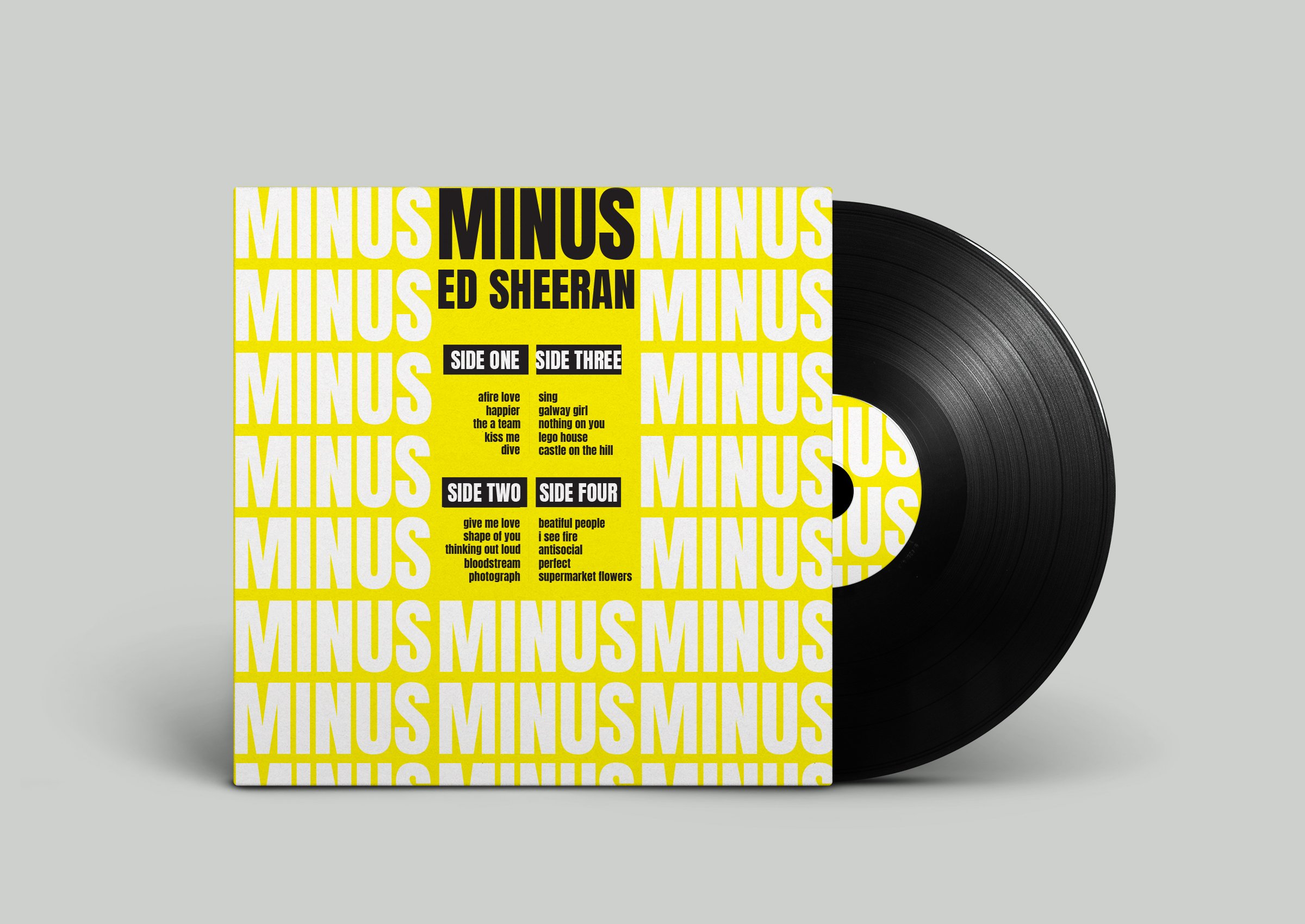 Vytvořila jsem typografický obal na vinylovou desku Eda Sheerana. Pro jeho budoucí album. Zatím totiž vydal pouze plus, devide, times.