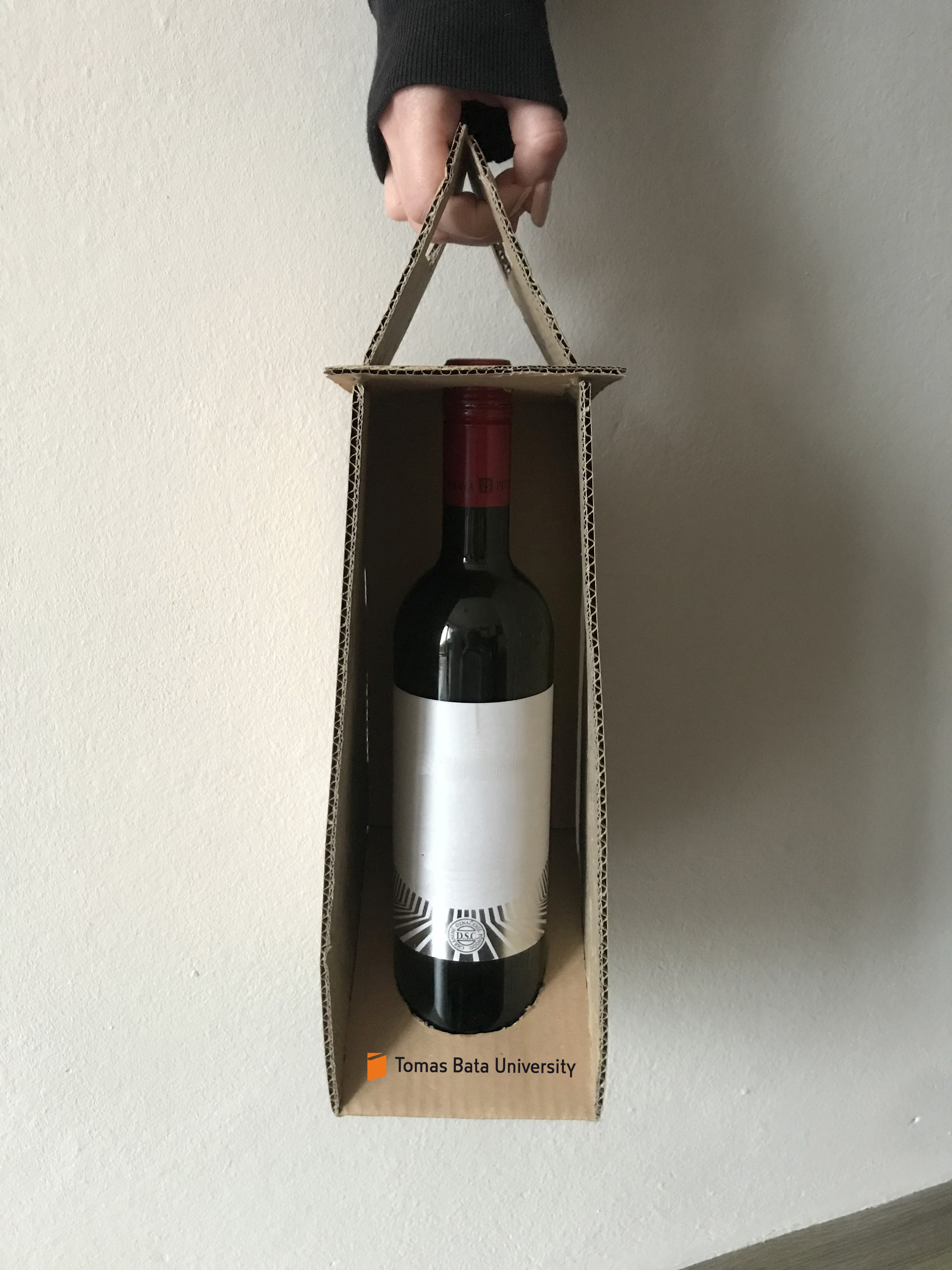Obal je vytvorený z jedného kusu kartónu. Po zložení drží bez lepidla a fľaša je bezpečne zaistená.
