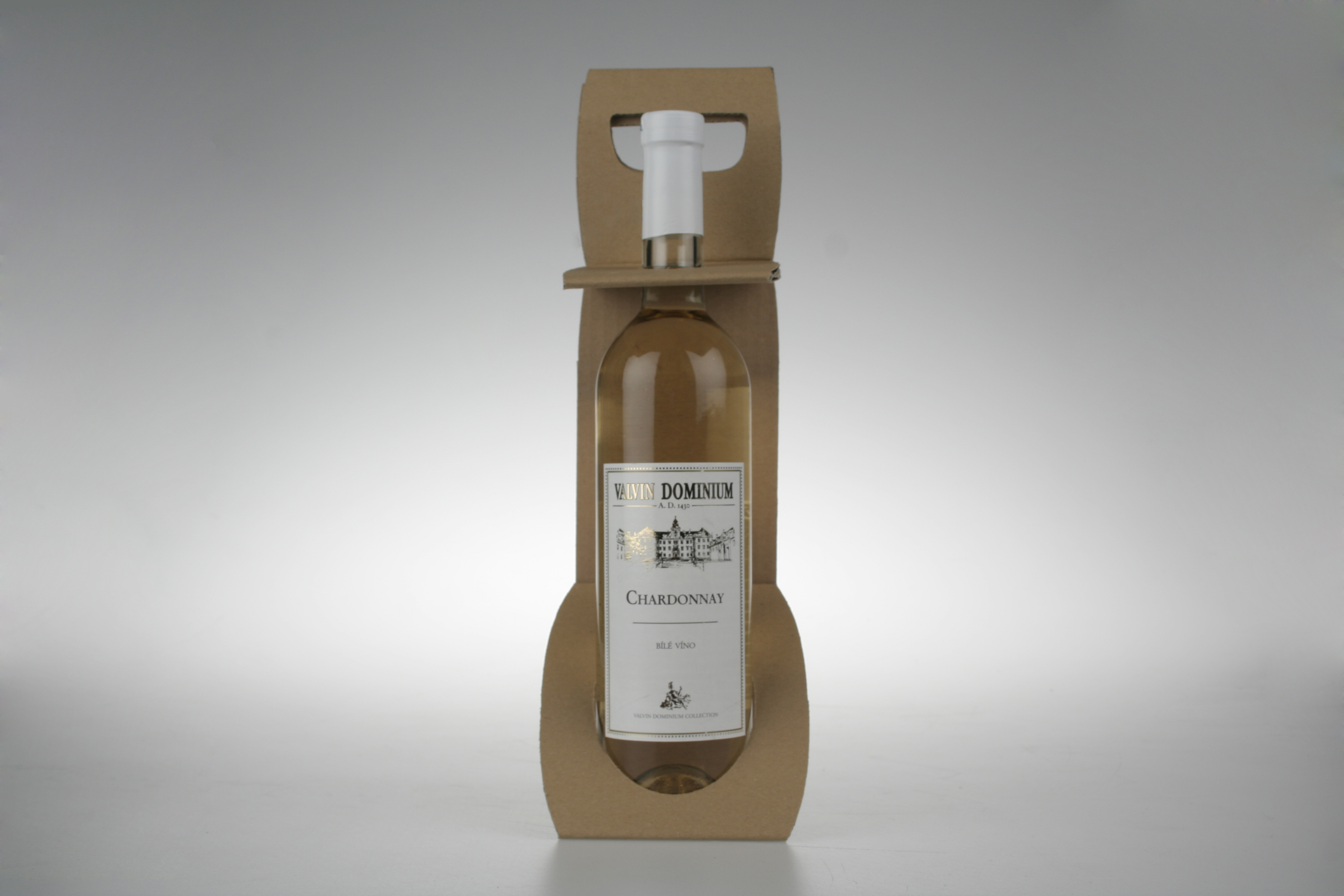 Obal na víno, který je vytvořen z jednoho pásu kartonu. Ohýbáním a jedním lepení se obal složí k použití. Obal lze složit do kratšího pásu, aby při skladování zabíral co nejméně místa.
