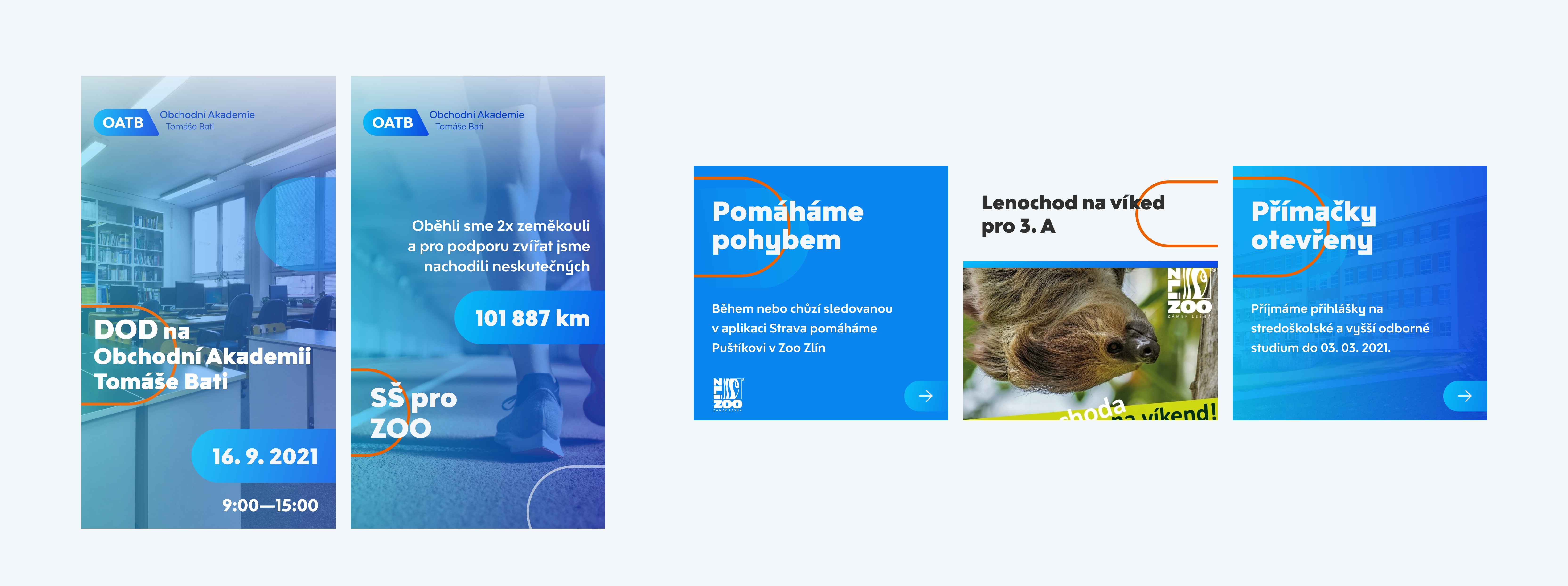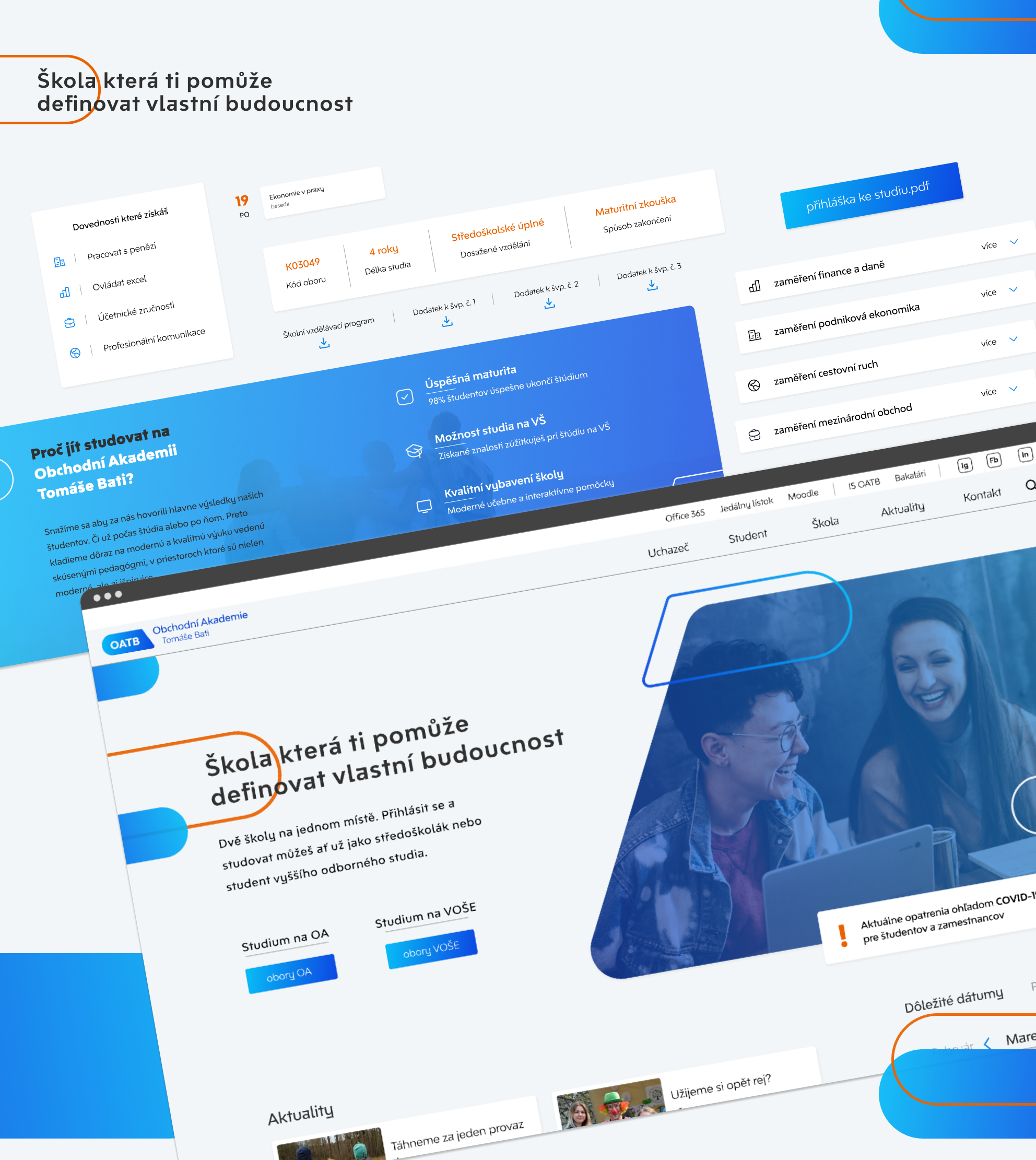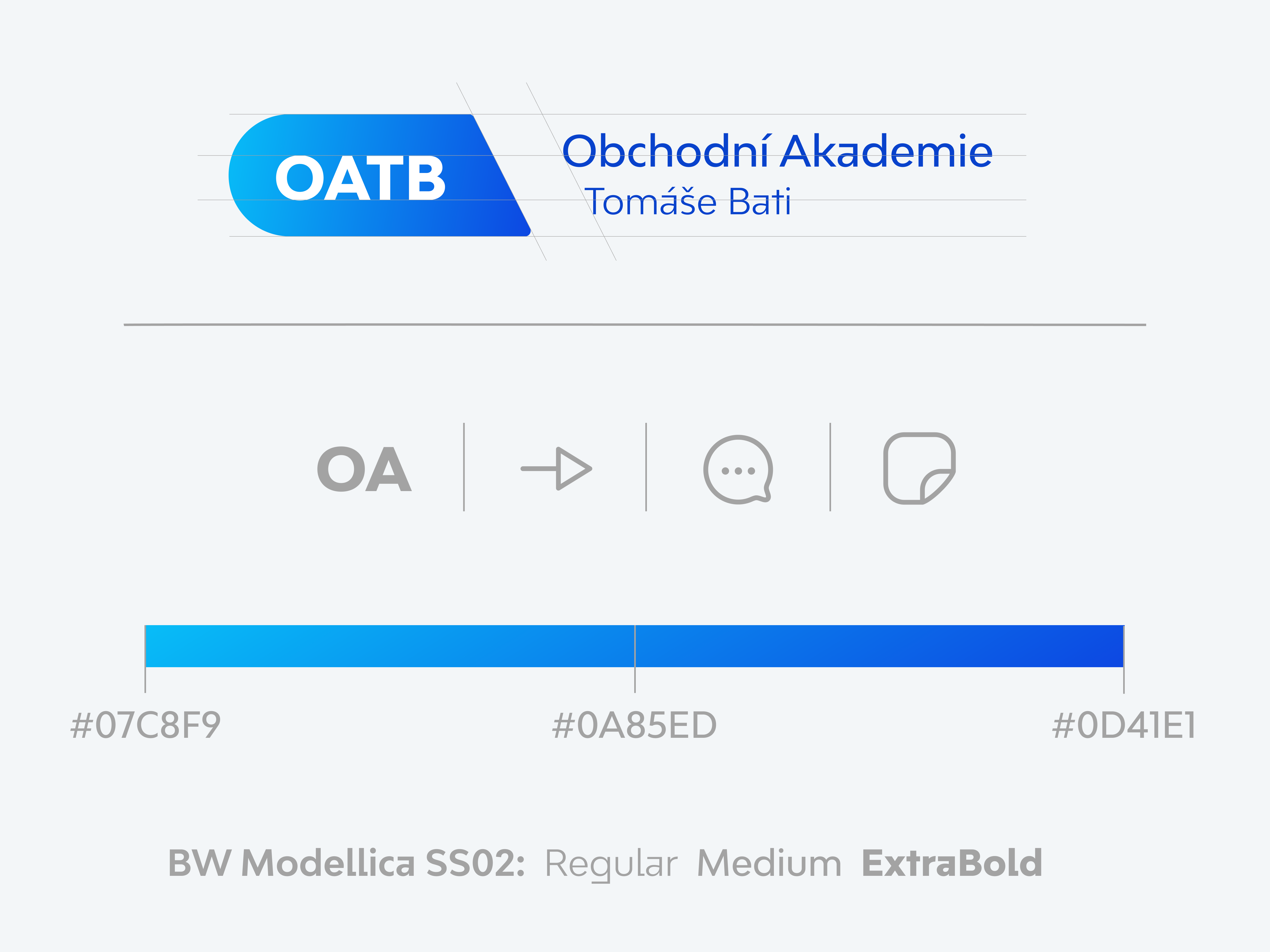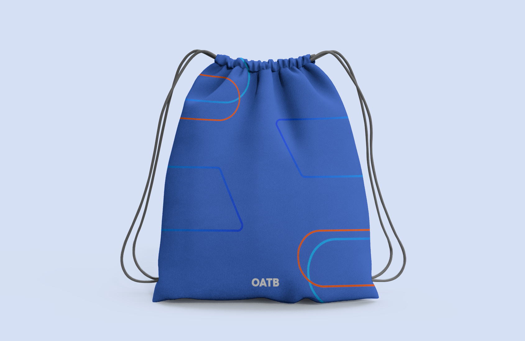 Návrh vizuálu OATB je čistý a moderný. Ústredný motív je značka, tvorená z tvaru plných písmen OA. Značka vytvára šípku a komunikačnú bublinu, čím odkazuje na rast a finančnícke schopnosti komunikácie. Farebnosť je postavená na gradiente modrých farieb, doplnených sýtou oranžovou. Samotná značka sa ďalej používa ako vizuálny prvok, formou masiek pre fotky alebo alebo grafických prvkov v outlineovej verzii. Web je postavený na 12 stĺpcovom gride a šablónach ktoré sa dajú prispôsobiť potrebám danej podstránky.