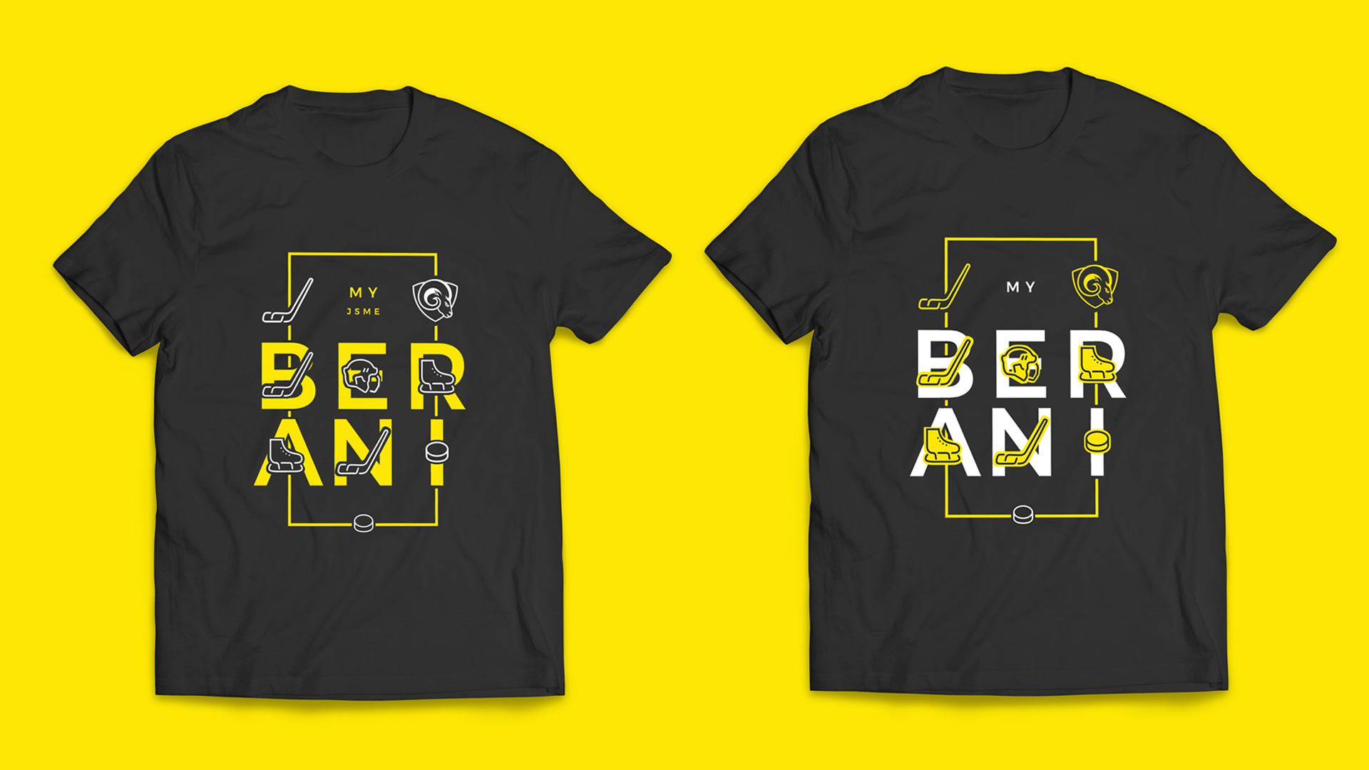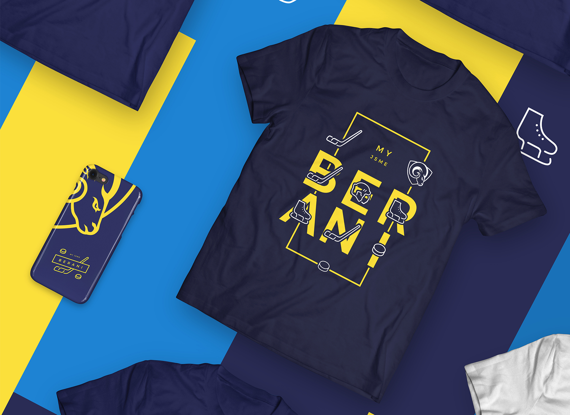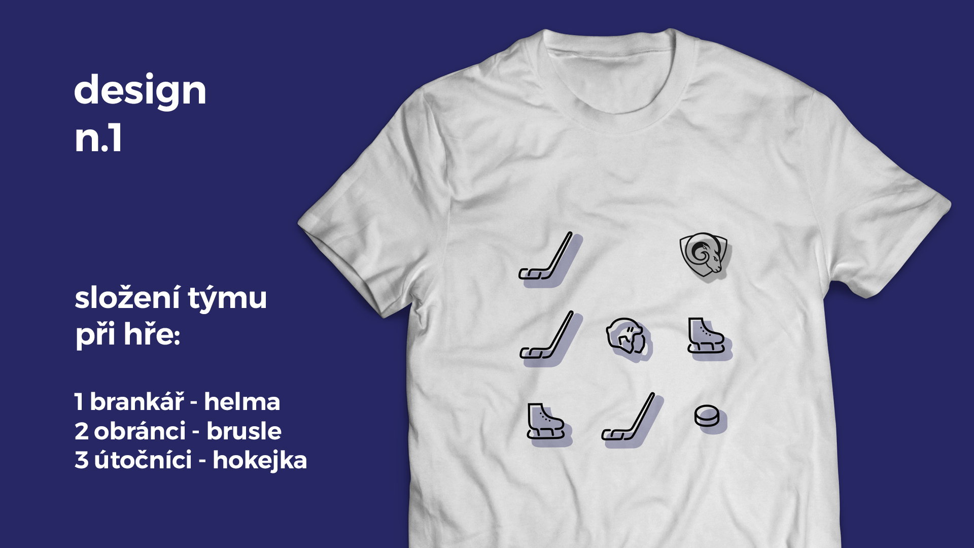 Cílem bylo vytvořit kolekci oblečení, která nebude na první pohled "hokejová", ale spíše módní. V kolekci jsem použil typografií, ilustrované symboly z hokeje (hokejka, puk, helma, brusle) a grafický motiv na způsob "alternativního loga", které by bylo použito pouze pro oblečení a případné doplňky.