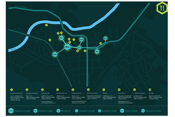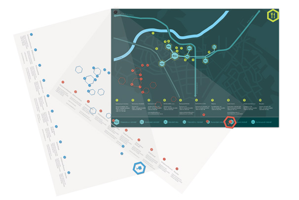 Kapesní orientační systém Uherského Hradiště. Tištěný na průhledné fólie.
