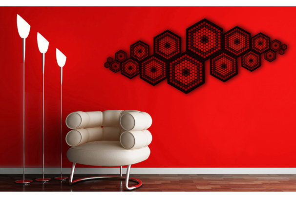 Ornament vznikl z dětské hry mozaika. Jejím následovným zpracováním jsem chtěla vytvořit novou možnost využití polepů na stěnu v interiéru.