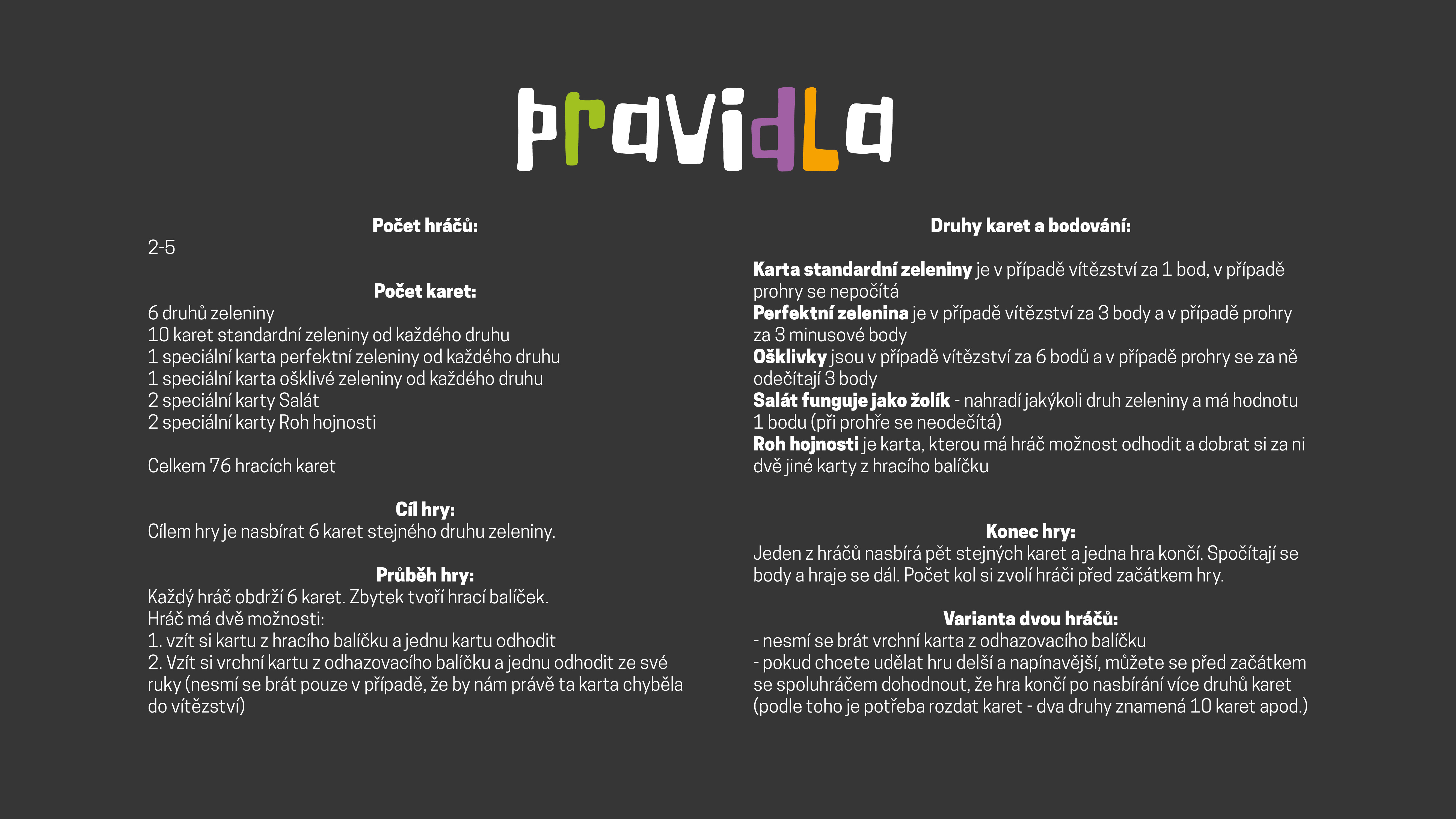 Ugly is the new beautiful! Ošklivky jsou rychlá karetní hra pro 2-5 hráčů. Hlavním cílem je nasbírat 6 karet jednoho druhu zeleniny. Hra šíří povědomí o problematice zeleniny, která se kvůli svému nezvyklému tvaru většinou nedostane na pulty obchodů a končí na skládkách. Jde o několik tisíc tun kvalitního jídla ročně jen v České republice.