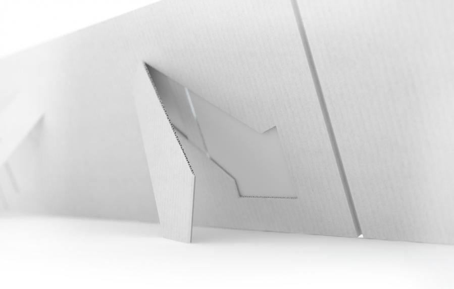 Stojan je vyroben z bílé třívrstvé lepenky o síle 3 mm.