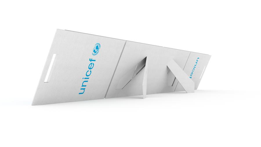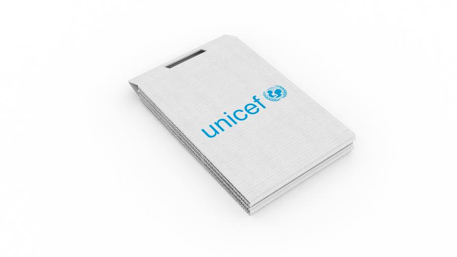 P. O. P. leporelo pro UNICEF je lehké, snadno přenositelné s kapacitou 160 certifikátů.