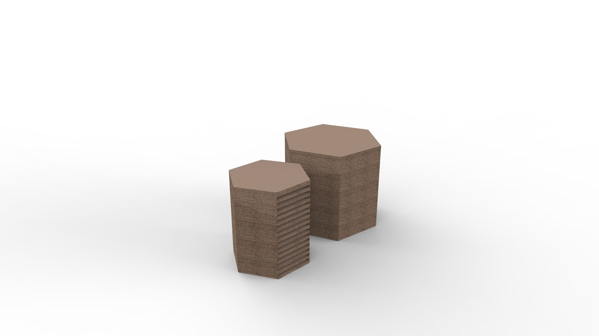 Projekt double hexa, je pokračovanie papierového nábytka z klauzurných prác z LS 2016. Ide o set sedacích prvkov, ktorý je inšpirovaný skladacím systémom matriošky. Je vytvorený z kartónu hrubého 1cm. Hmotnostná kategoria max. 90kg.