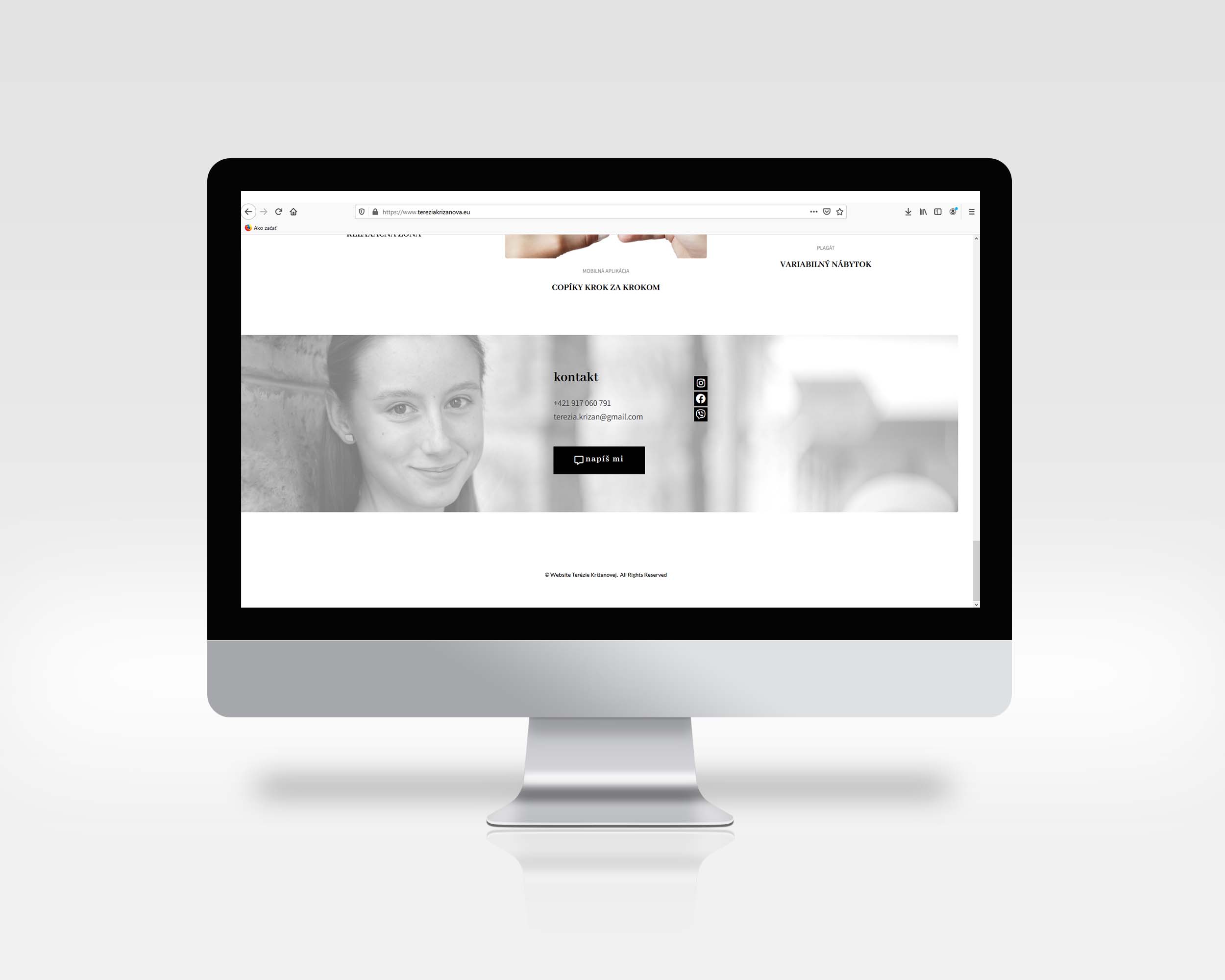 Web s vlastnou doménou a hostingom, slúži k mojej osobnej prezentácii. Mojim cieľom bolo vytvoriť jednu stránku bez zbytočných preklikov. Webom stačí iba skrolovať dole a dostanete sa cez moje práce až ku kontaktu. Webstránku som vytvorila vo WordPresse za použitia šablóny Elementor a pridávania jednotlivých sekcií. V sekciách sa nachádzajú moje projekty, ktoré tvoria moje vlastné prezentačné portfólio. Portfólio mojich prác sa stále rozvíja a na web plánujem postupne pridávať nové veci.