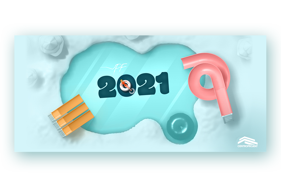 Bazény, které jsou spojeny se společností Centroprojekt, se staly hlavním motivem PF pro rok 2021. Cílem návrhu bylo vytvořit líbivý vizuál, který potěší zákazníky Centroprojektu. PF funguje jako webová stránka, která obsahuje animovaný gif a klikatelné logo společnosti, přes které se uživatel dostane na oficiální stránky Centroprojektu.