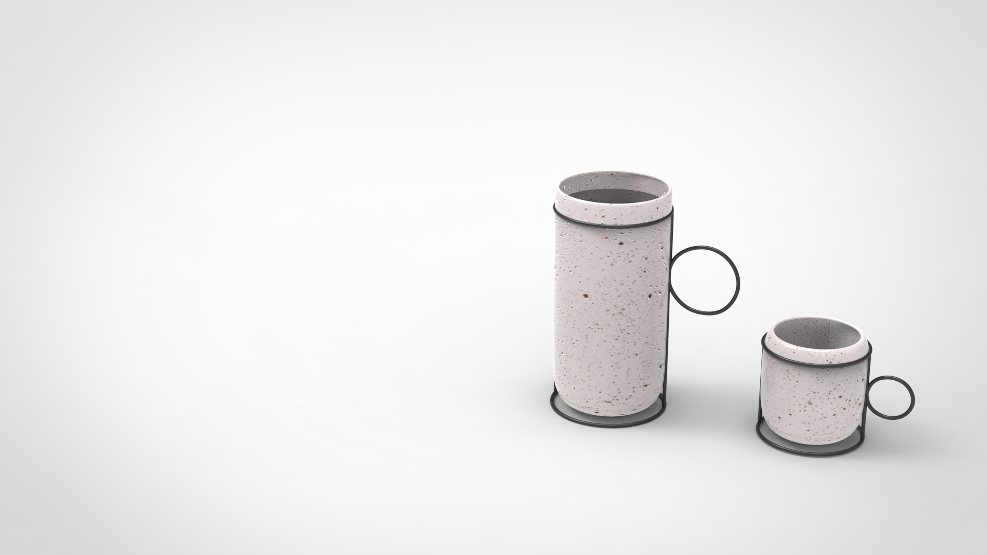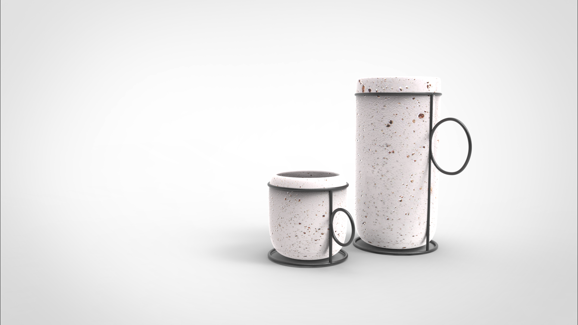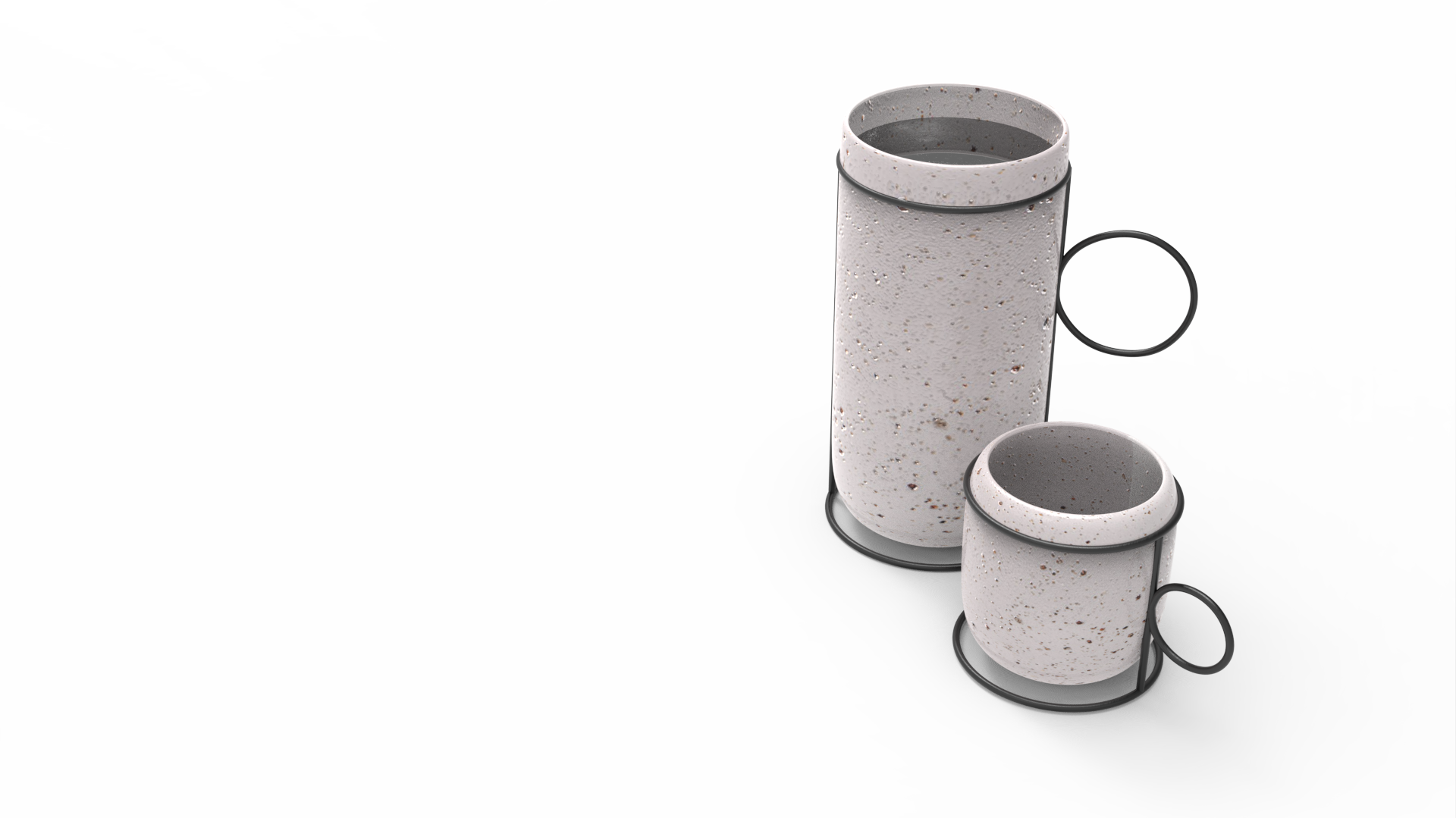 Súbor nádoby a pohára na tekutinu poukazuje na tradičnú drotársku techniku a čiastočne aj ťažký život drotárov. Charakteristickým produktom vandrovných drotárov boli opravy keramických, porcelánových, sklenených či plechových nádob. Drotári drôtom spevňovali nielen poškodenú, ale aj novú hrnčinu, aby zabezpečili jej vyššiu životnosť. Tu vznikol koncept prepojenia drôtu s nádobami.