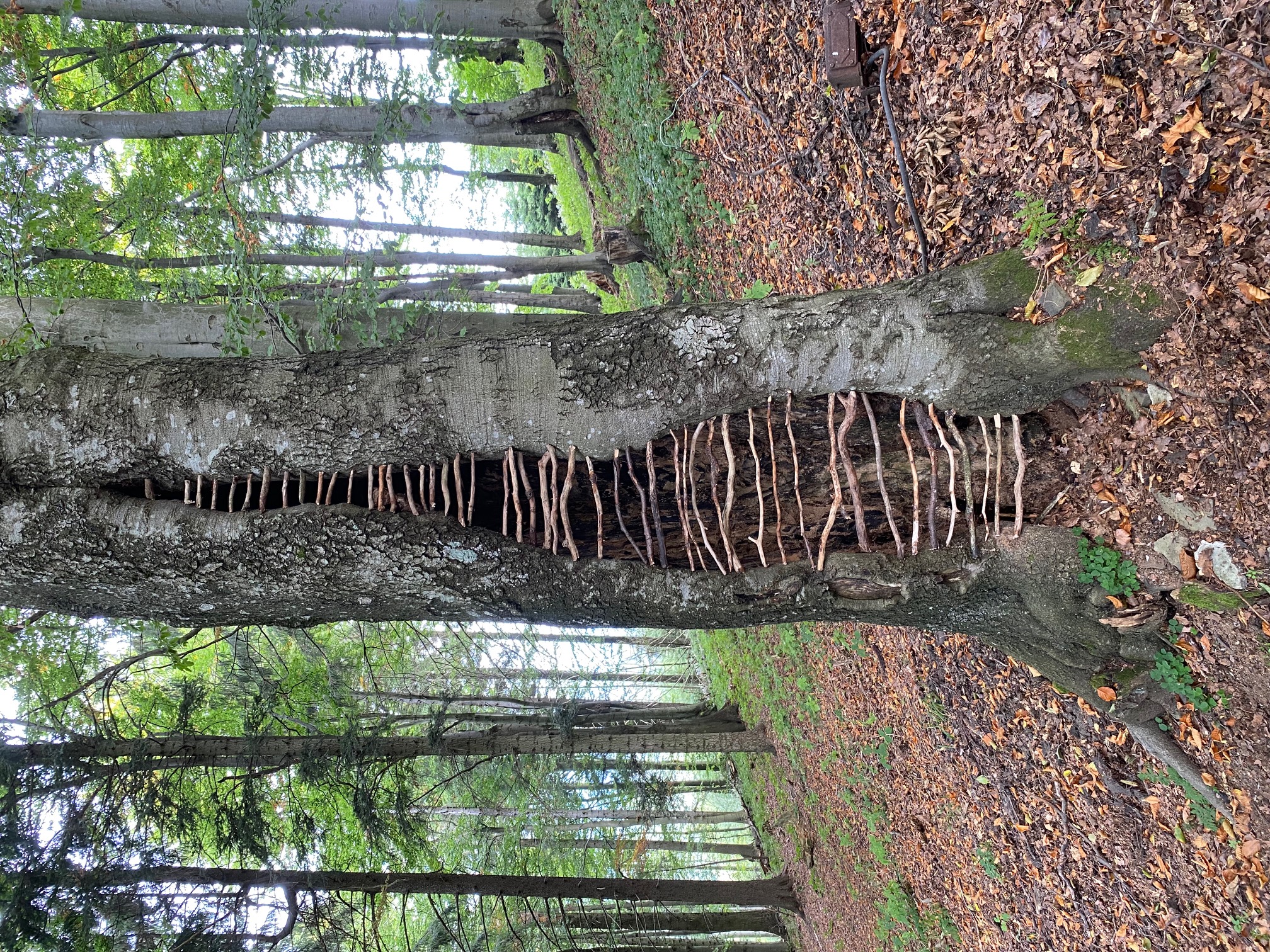 Pomocou konárikov nájdených v okolí sme vytvorili "rebrá" stromom.