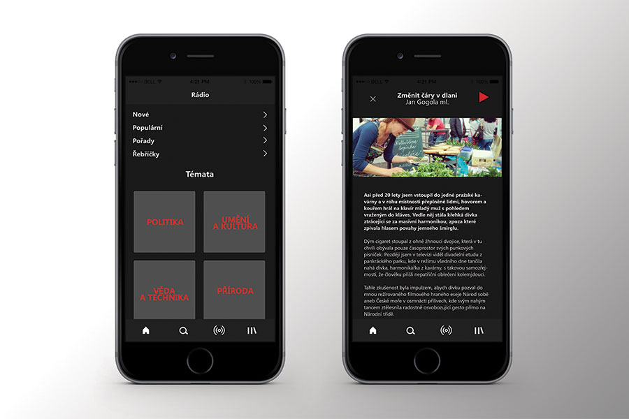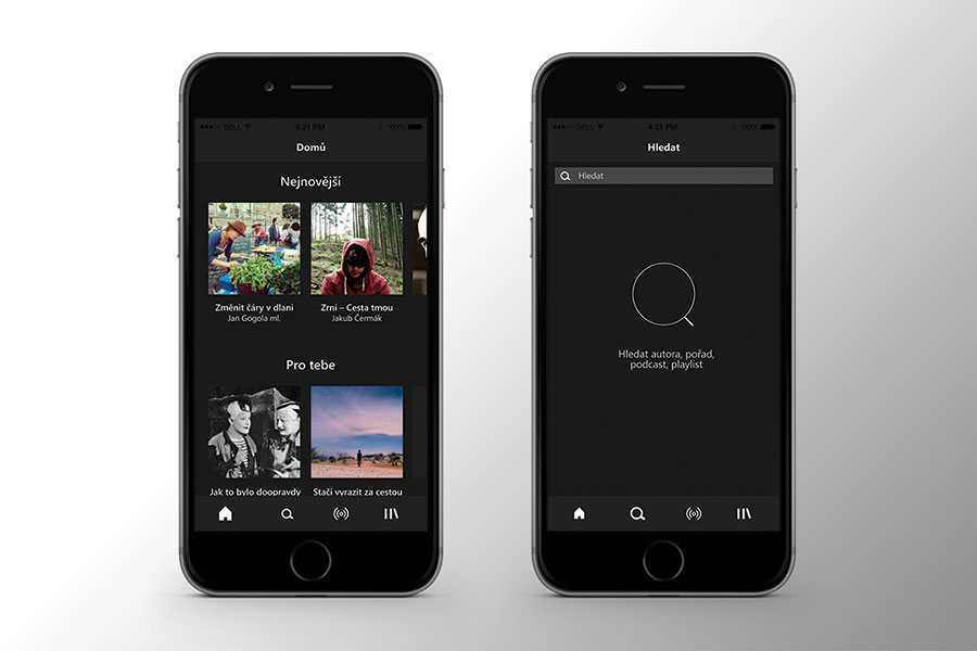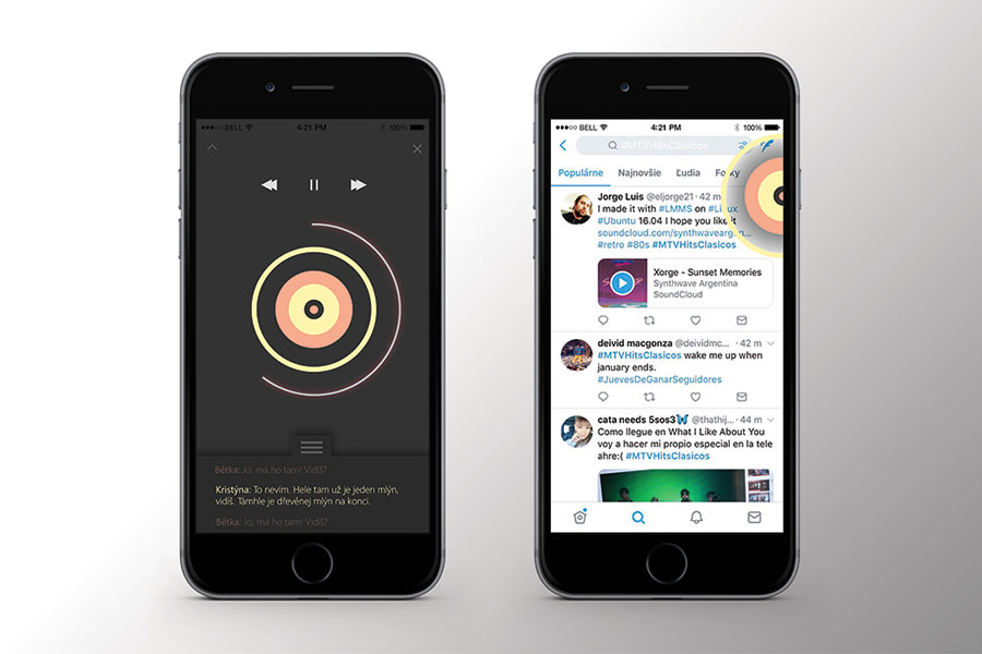 Aplikácia - podcast audio player. Prvok v applikácie je audioresponzívny, reaguje na hlas rozprávača. Aplikácia sa dá minimalizovať so zachovaním prehrávaného zvuku na pozadí.