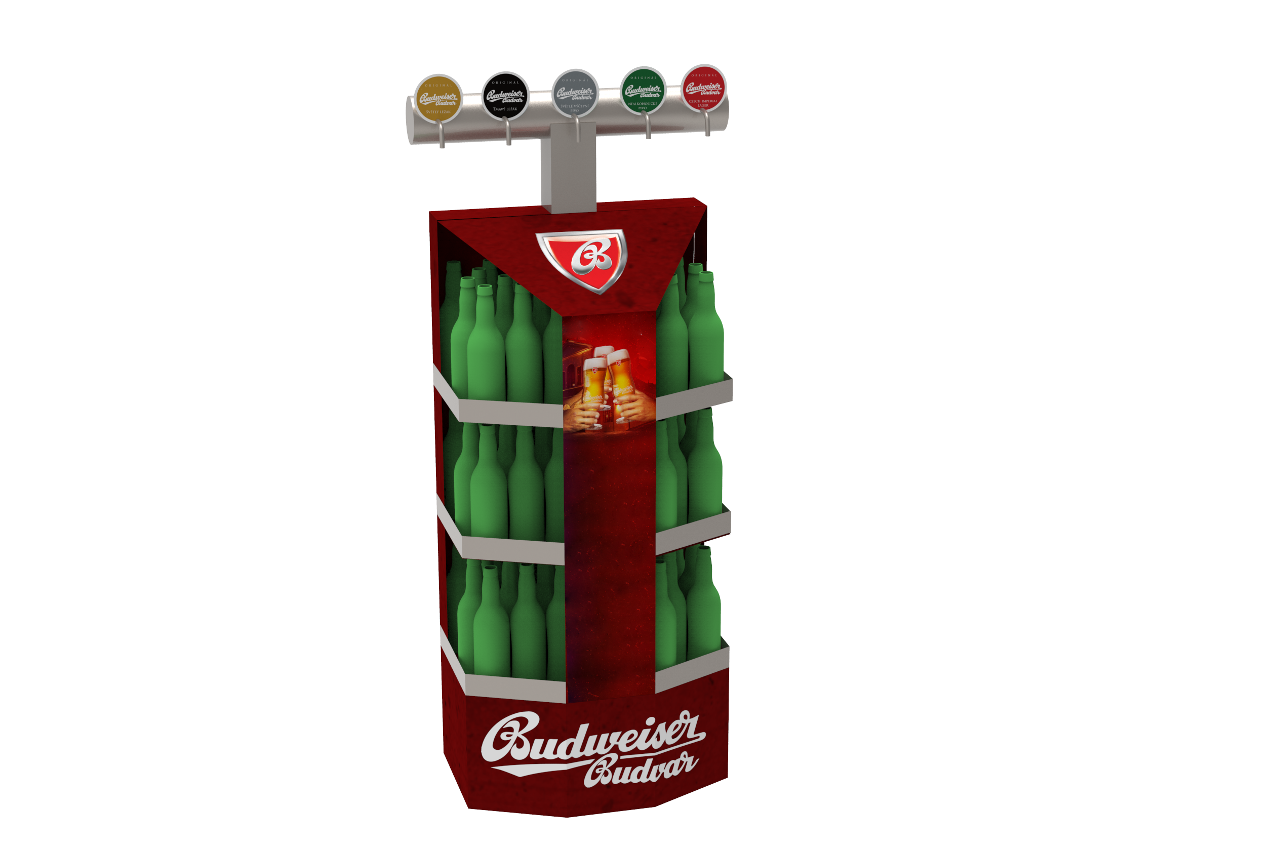 Podlahový stojan pro Budějovický Budvar.