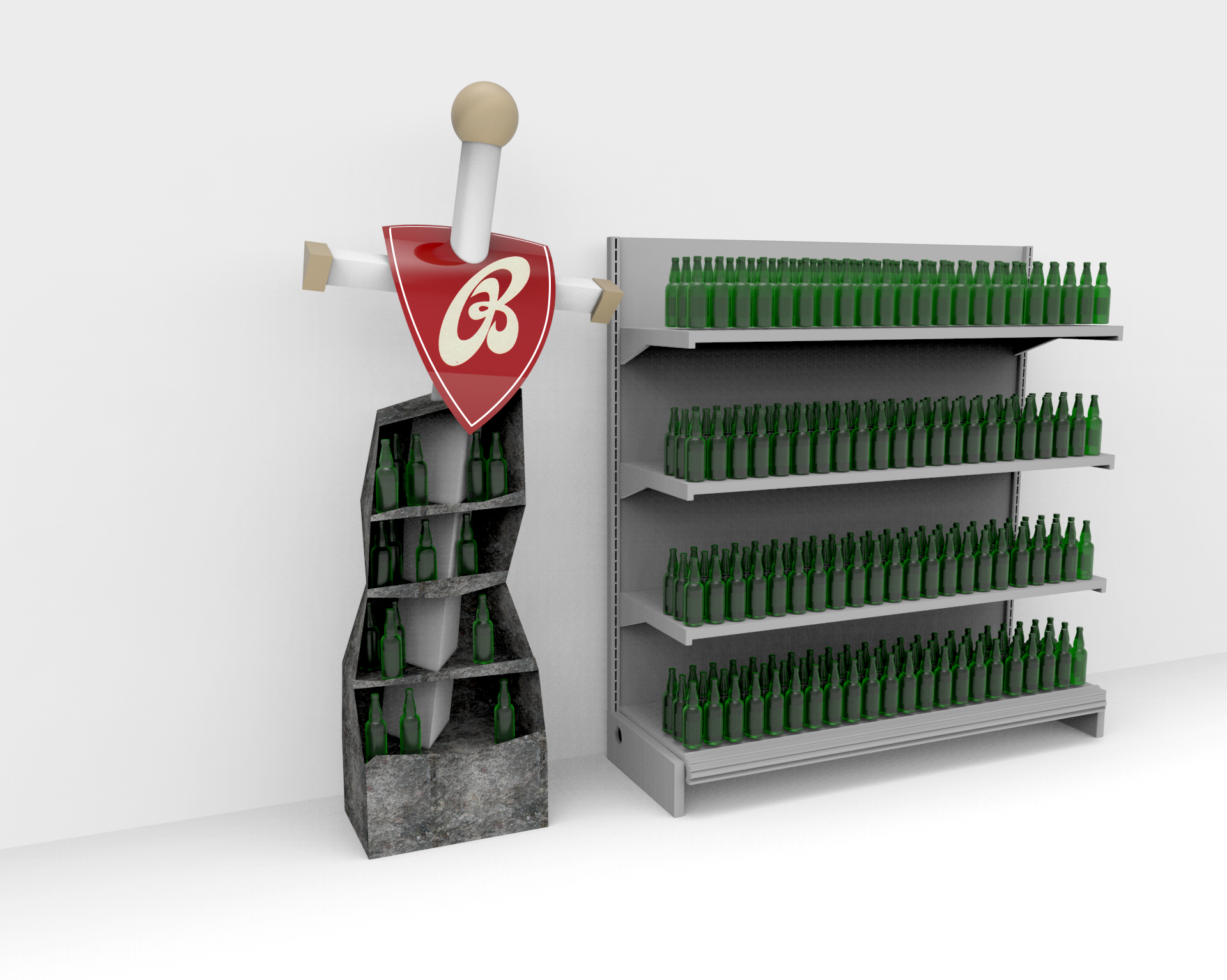 Popai 2017 - Návrh podlahového stojanu ke stěne pro Budějovický Budvar