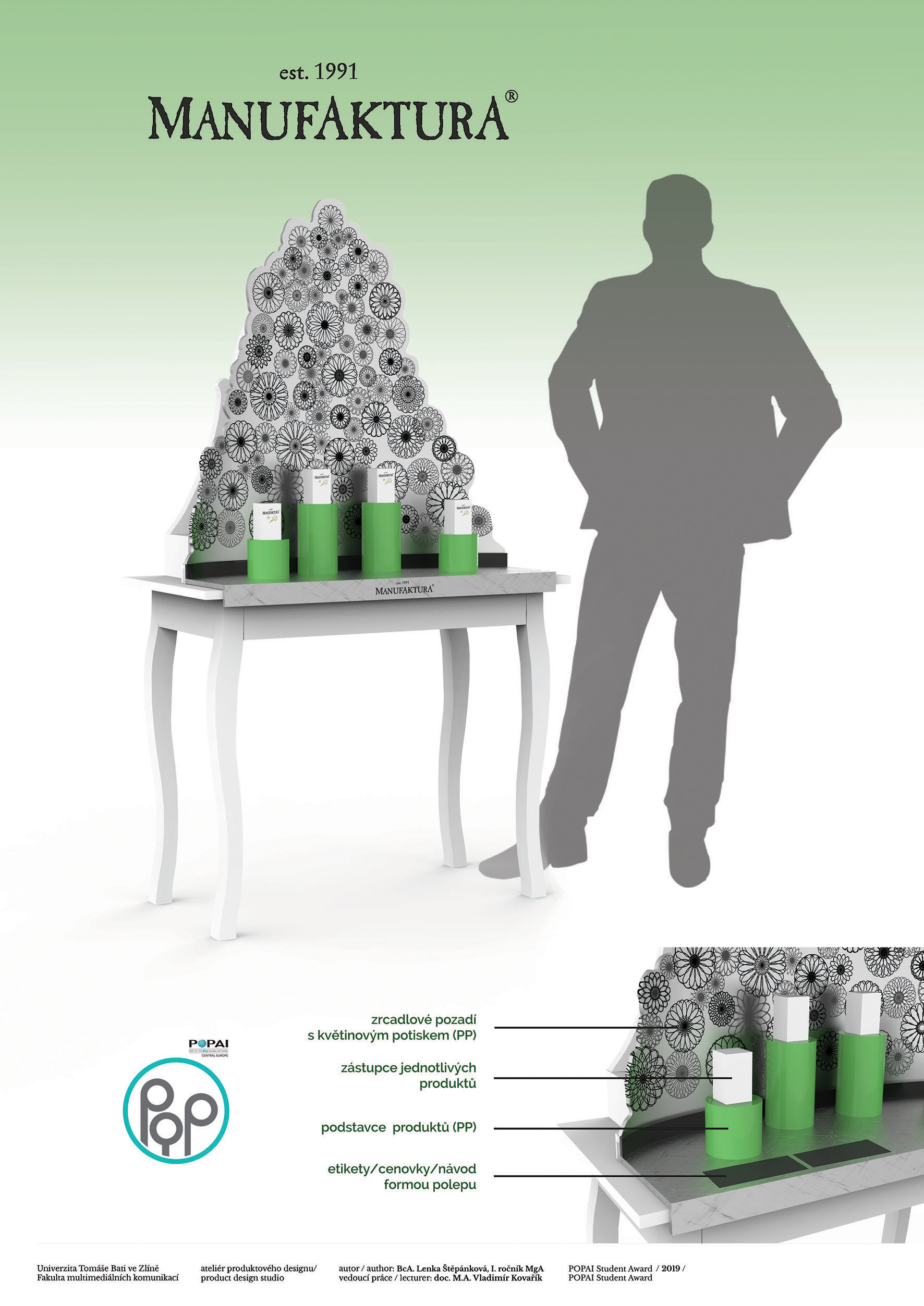 Výstavní stojan pro sedmikráskovou řadu kosmetiky firmy Manufaktura (POPai Student Award)