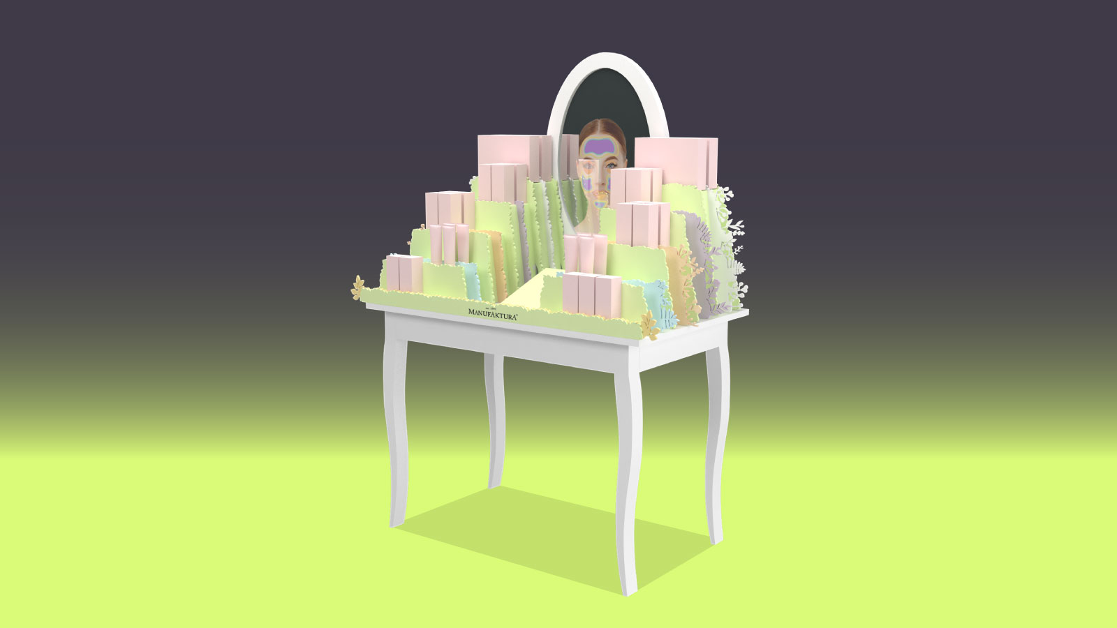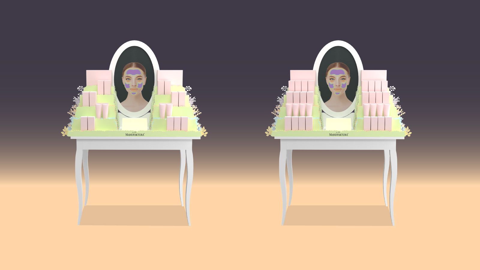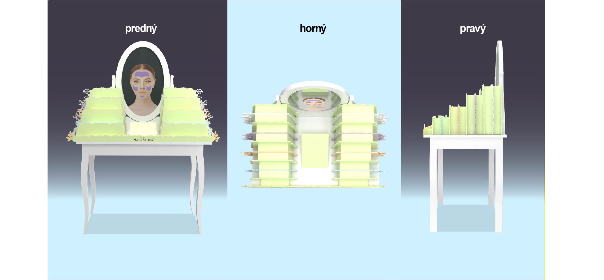 Cielom tohto p.o.p. stojanu je predstaviť uživaťelovi produkty spolu s návodom ako ich uživať. Inšpirované raslinými motývmi.