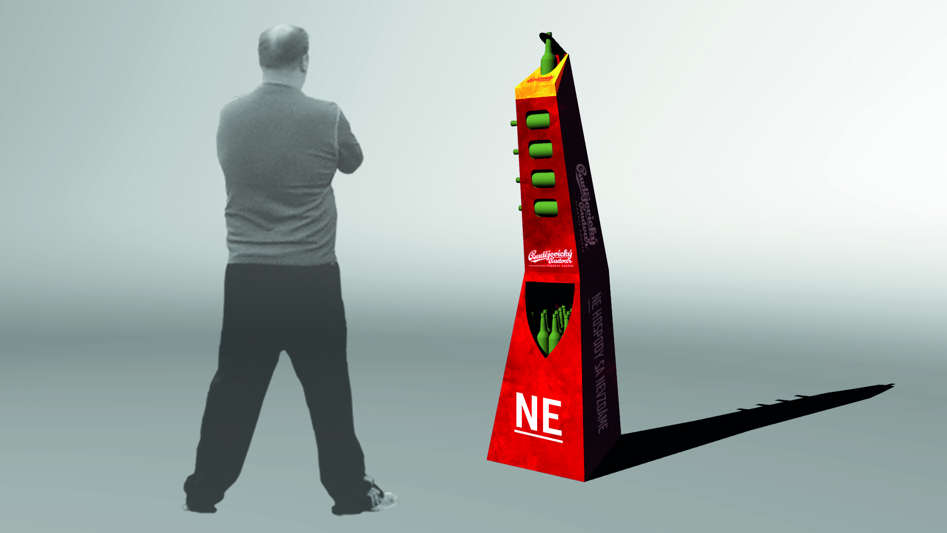 Návrh reklamného stojanu na pivo pre Budějovický Budvar.
