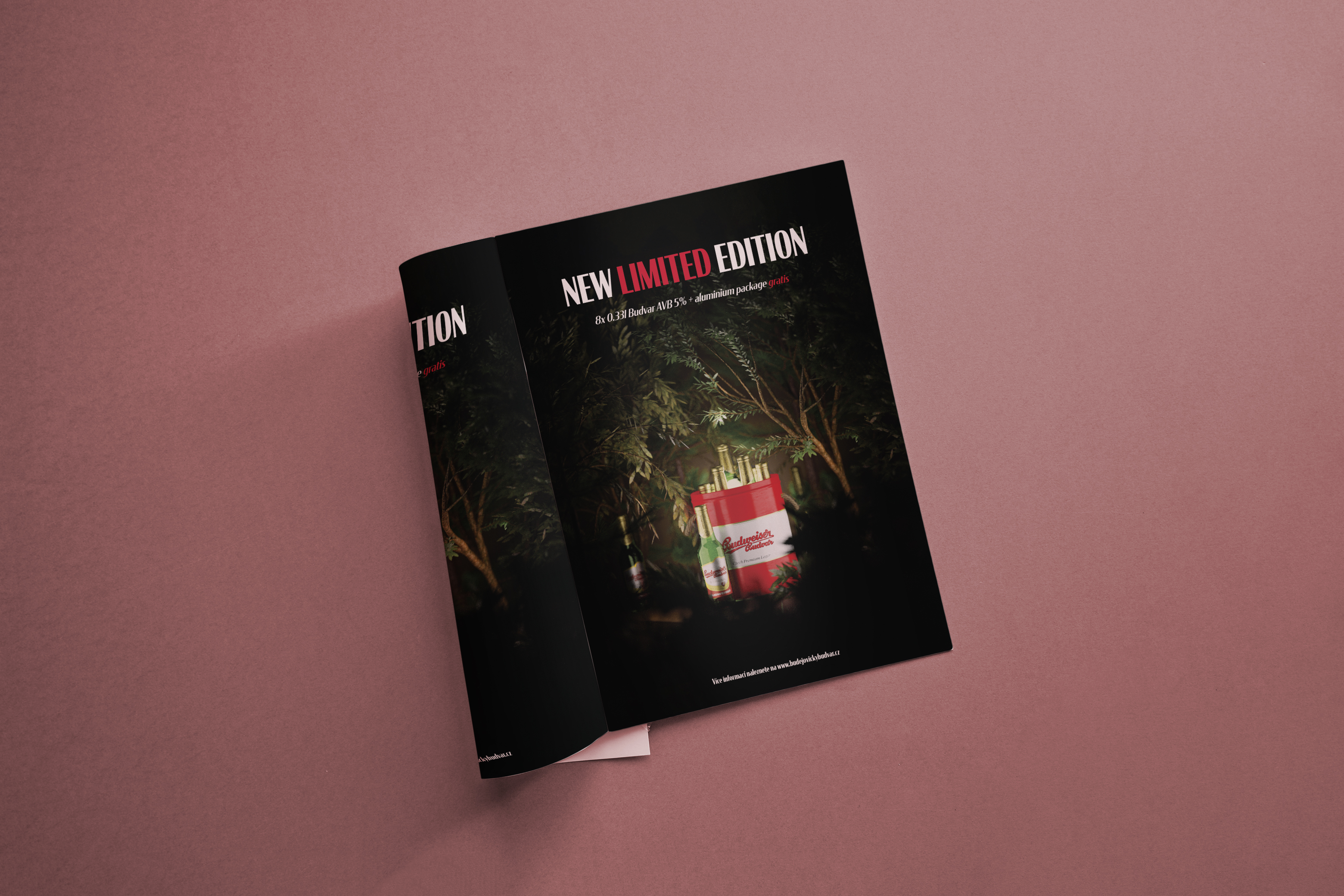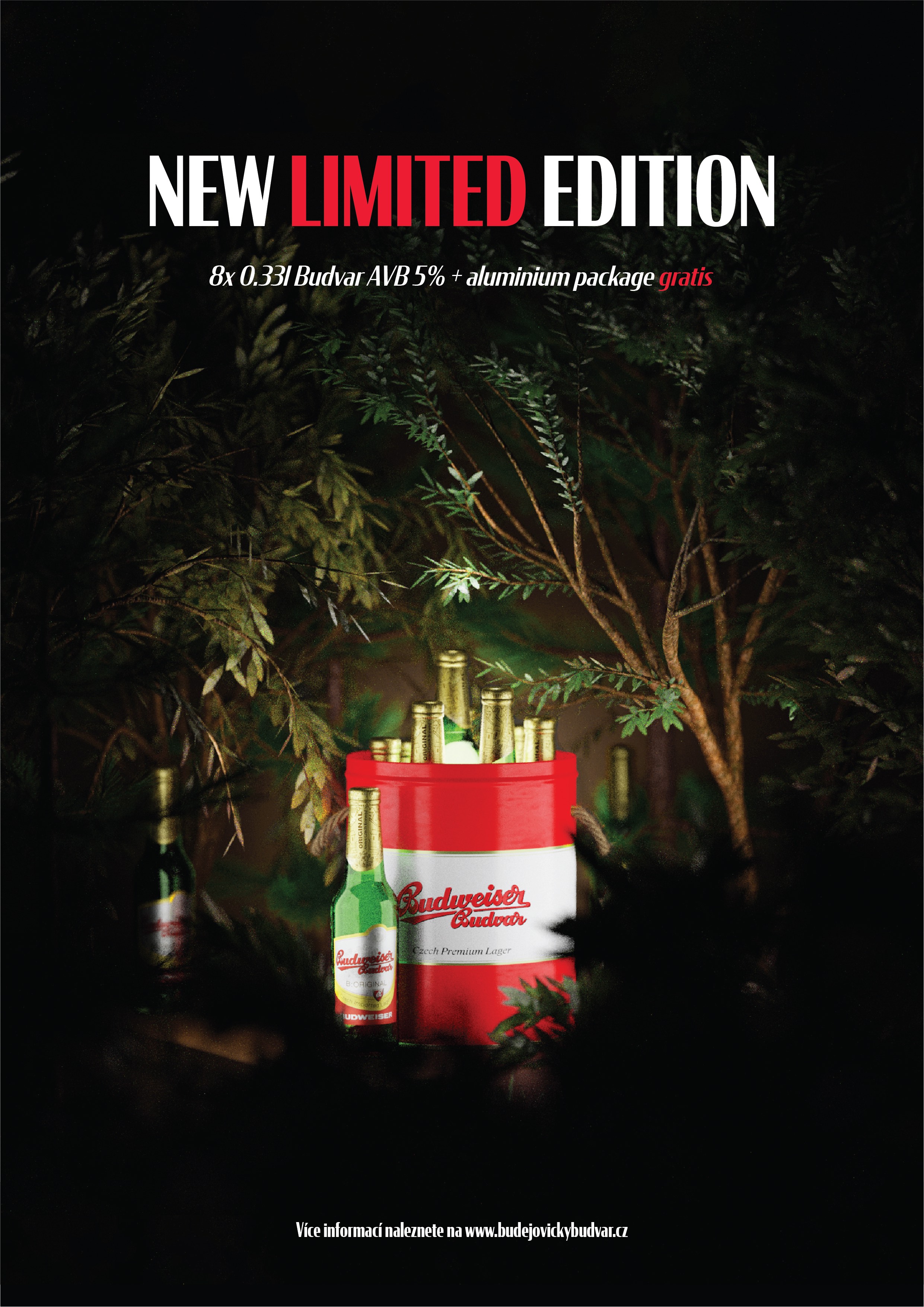 Ilustrace na plakátu/inzerátu na nový multipack od Budvaru je vytvořená ve 3D. Je tam znázorněno nové plechové balení osmi kusů třetinkových lahví v houští mezi stromy a vyjadřuje to většinou to jaký z toho má člověk na první pocit. Může to znamenat "plechovka do přírodní pohody", a tak dále. Kombinace zelených stromů a červeného textu+plechovky se mi zdála být vhodná a ladivá. Použitý font—Condor.