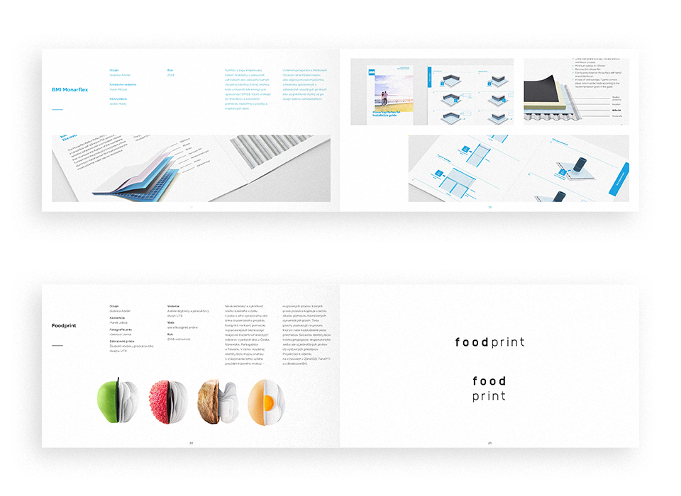 Portfólio ako tlačená forma prezentácie mojich prác vychádza už z existujúcej identity, ktorej nositeľom je moja webová stránka. Vychádzajúc z nej som vytvoril jednoduchý a čistý layout, ktorý bude stelesňovať môj slogan „pekne a funkčne“, ale zároveň umožní dynamickú, a veľkolepú prezentáciu mojich prác.