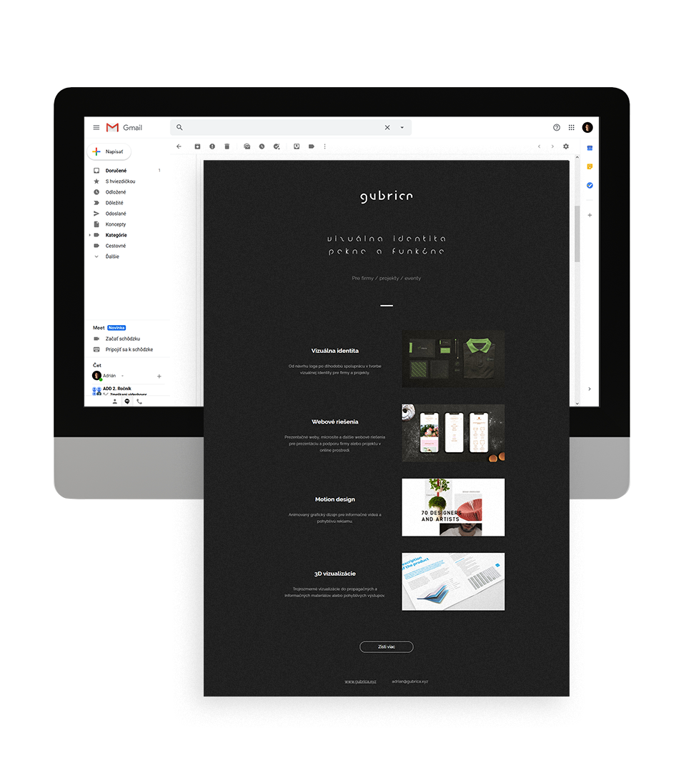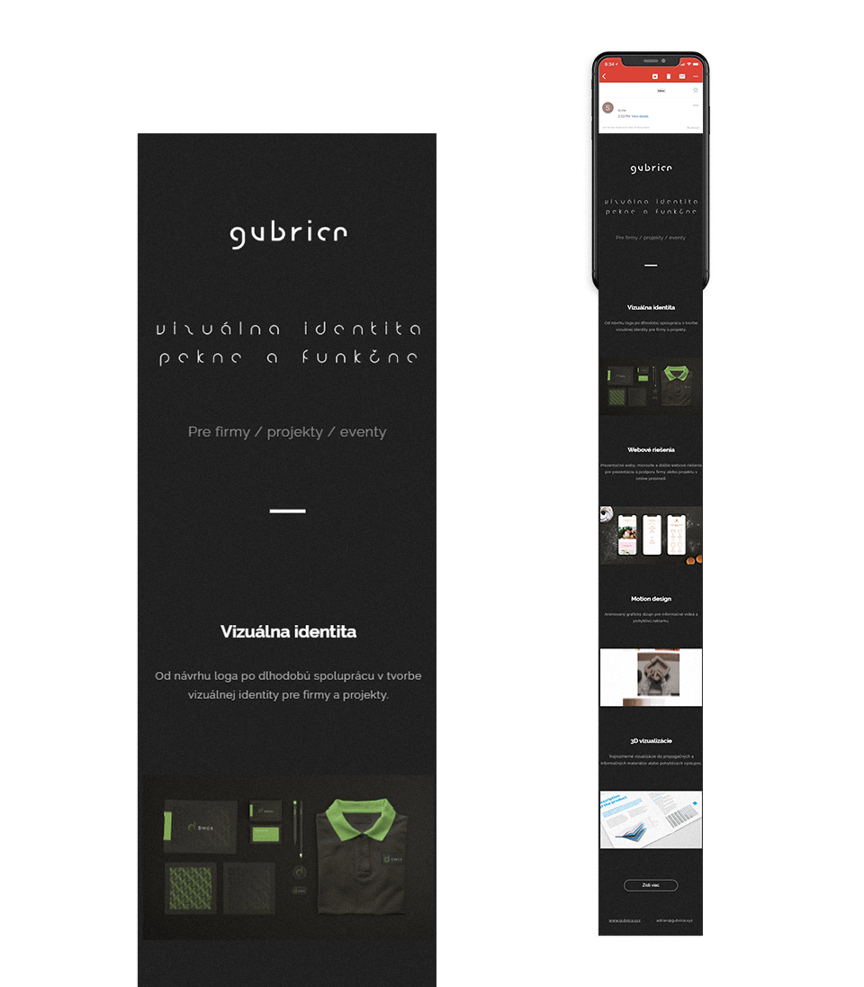 Portfólio je doplnené o responzívny direct mail, ktorý sa snaží stručne zhrnúť obsah portfólia a komunikovať služby, ktoré ponúkam.