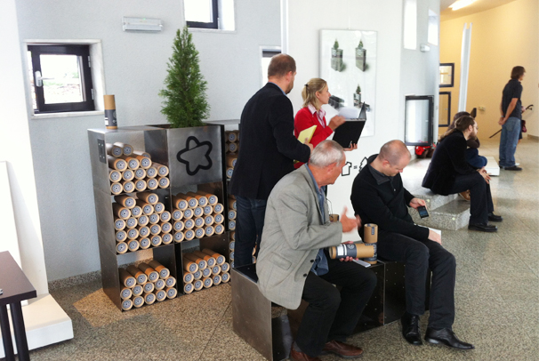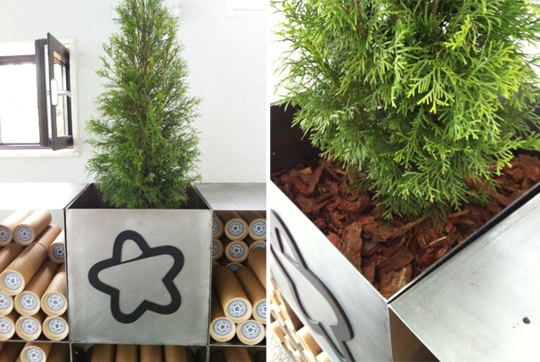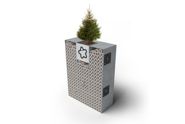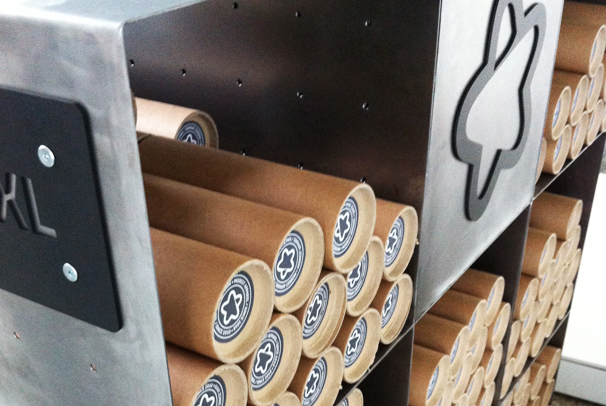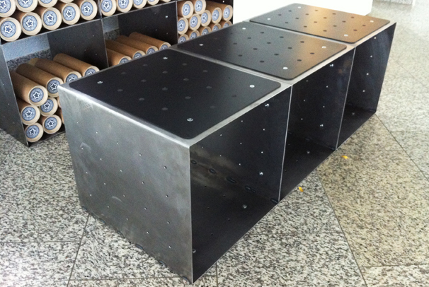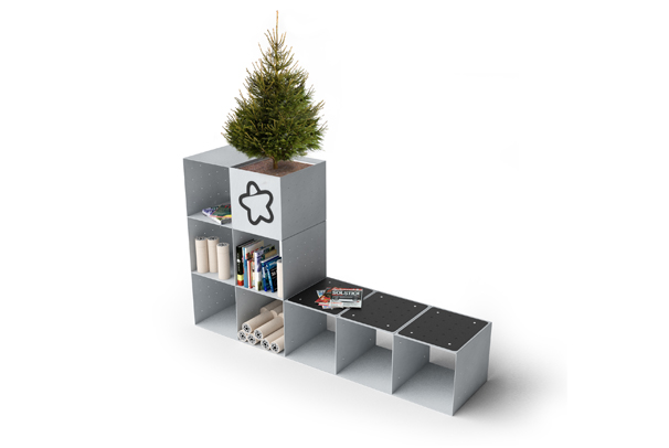 Hlavním problémem při uskladnění velkého počtu tub obasahující produkty značky MODEST APPAREL je především nesoudržnost a časté problémy s tříděním uschovaných triček podle velikostí. Tento problém řeší stojan na tuby, který v základní sestavě, navržené do interiéru skladu, dokáže pojmout až 550 tub a zároveň selektuje obsažená trička do čtyř základních velikostí (S, M, L, XL). Stojan vychází z jednoho dílu, z kterého lze následným opakováním vytvořit na míru téměř jakoukoliv sestavu pro dané místo či prostor. Stojan je primárně navržen pouze jako součást interiéru značky MODEST APPAREL a počítá se i s případným použitím jako POP stojan do maloobchodů, nebo na festivaly. Vzájemným uspořádáním výchozího prvku lze vytvořit i sezení nebo knihovnu. Celou Sestavu umocňuje speciální díl, který slouží jako květináč a zároveň jako místo opatřené logem značky. Díky otvorům, které jsou umístěny po všech stranách dílu se nabízí možnost fixovat tyto díly k sobě do předem definovaných tvarů, nebo případně jiných tvarů vyhovujících pro daný prostor. Tyto otvory slouží dále k upevnění informace o velikostech, přidání lišty pro zavěšení triček, případně k dalším fixacím nejrůznějších prvků.