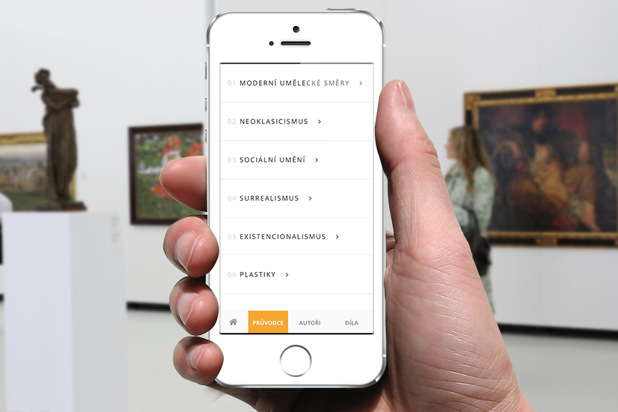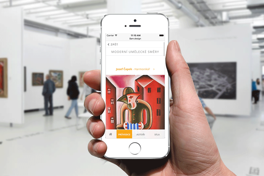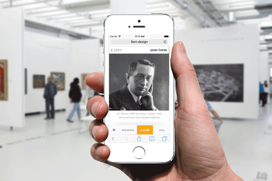 My goal was to make fully functionable website for mobile devices which you can use as a guide and easily find information about authors and their works. Website includes guide categorized by artistic movements, search of authors or works and of course some basic information about exhibition itself. It's made for mobile devices only, mainly for iPhone 5(s).
