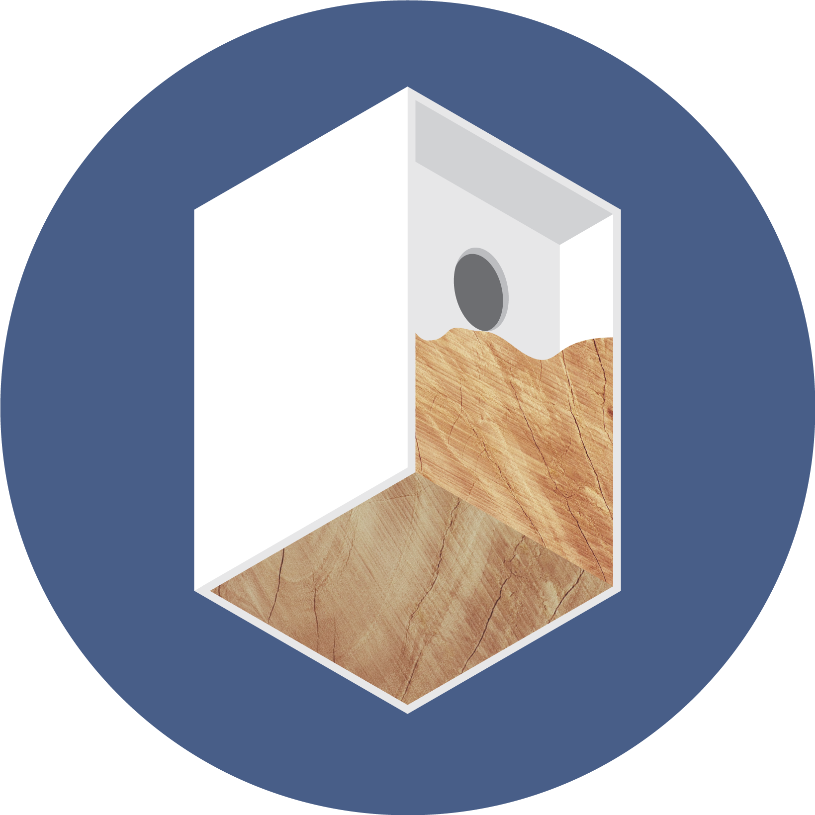 Minimalistická bílá budka pro Sýkoru Modřinku, doplněná přírodní kresbou akátového dřeva.