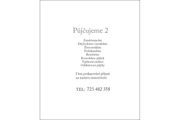 Zámena údernej, akčnej, či hard-sellovej typografie za decentnú, kľudnú či umiernenu. Pôžičky by mali evokovať modlitebnú knížku a zároveň informovať užívateľov o najlepších ponukách pôžičiek či vyplácani exekúcii.