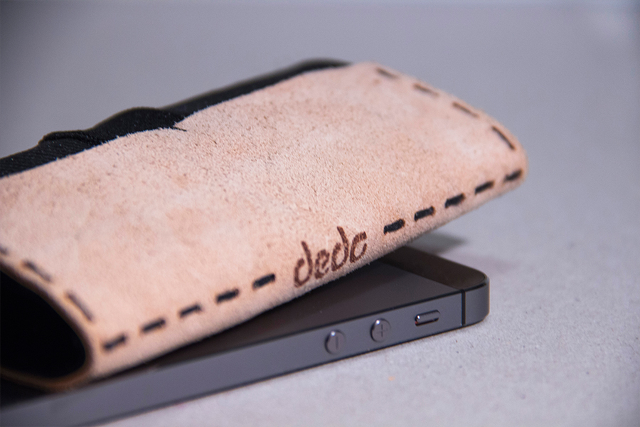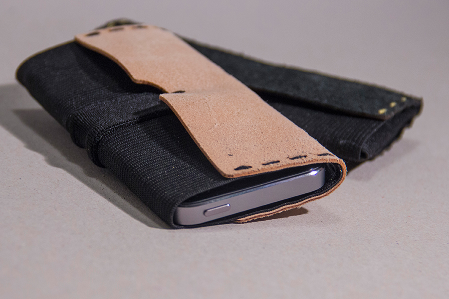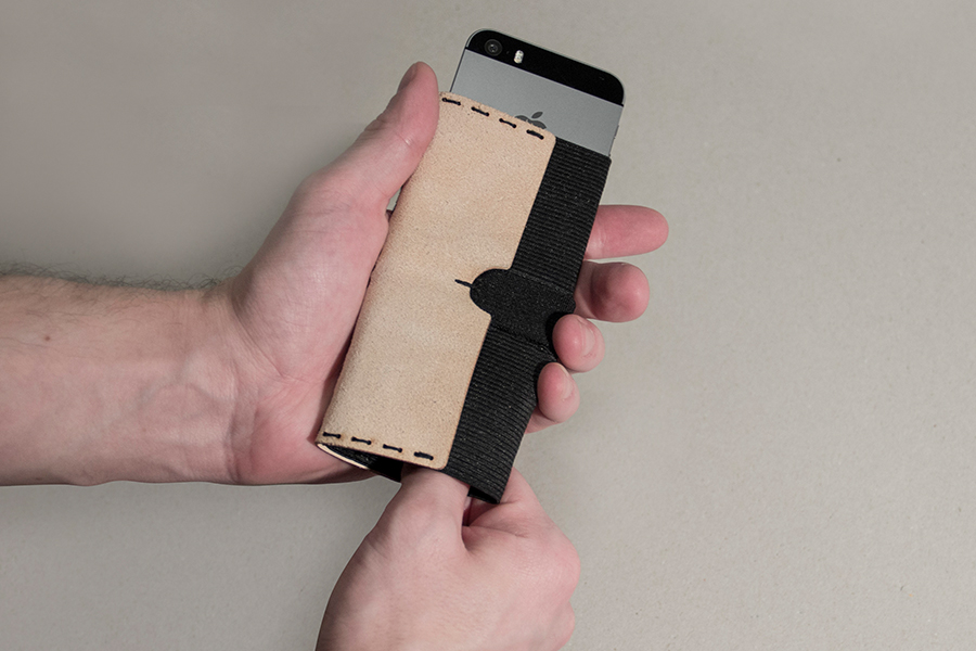 puzdro na iphone vytvorené ručným prešitím kože a pruženky