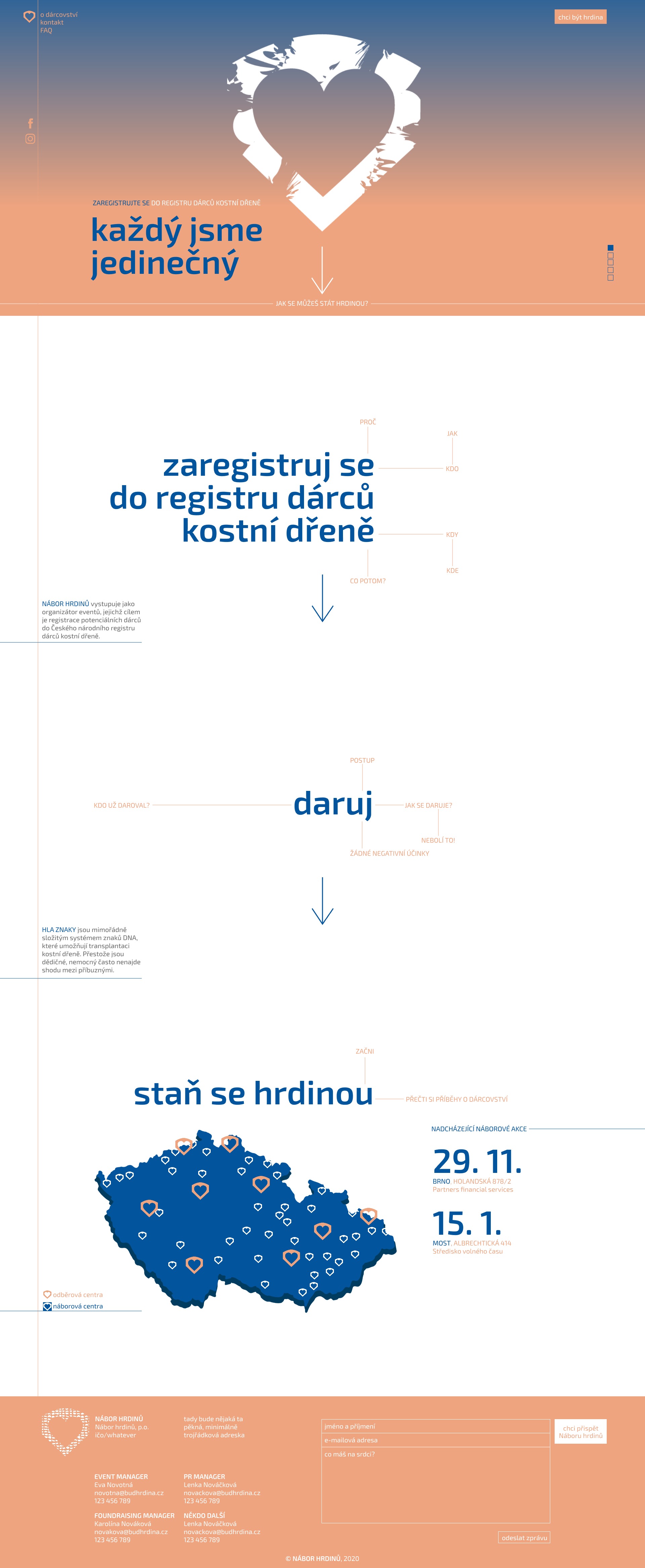 Redesign vychází z původního vizuálního stylu, je však elegantnější, jemnější a jednodušší. Kampaň vychází z malé možnosti shody transplantačních znaků – každý jsme jedinečný (a každý potřebujeme jiného dárce). Logo se stalo proměnlivým, stejně jako pacient, který potřebuje momentálně pomoct. Web je postavený na informacích, kdy se návštěvník potřebuje jednoduše a nerušeně dostat ke konkrétním odpovědím. V brožuře se dozví většinu důležitých informací ohledně organizace i dárcovství, včetně dalších možností podpory Náboru.