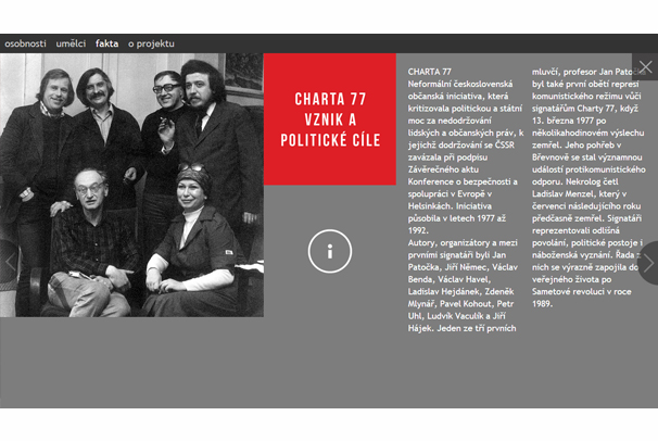 Webová stránka je responsivní na různé typy zařízení a je také optimalizována pro různé prohlížeče. Do budoucna bychom chtěli rozšířit jazykové mutace a dodělat všechny články o osobnostech a umělcích.