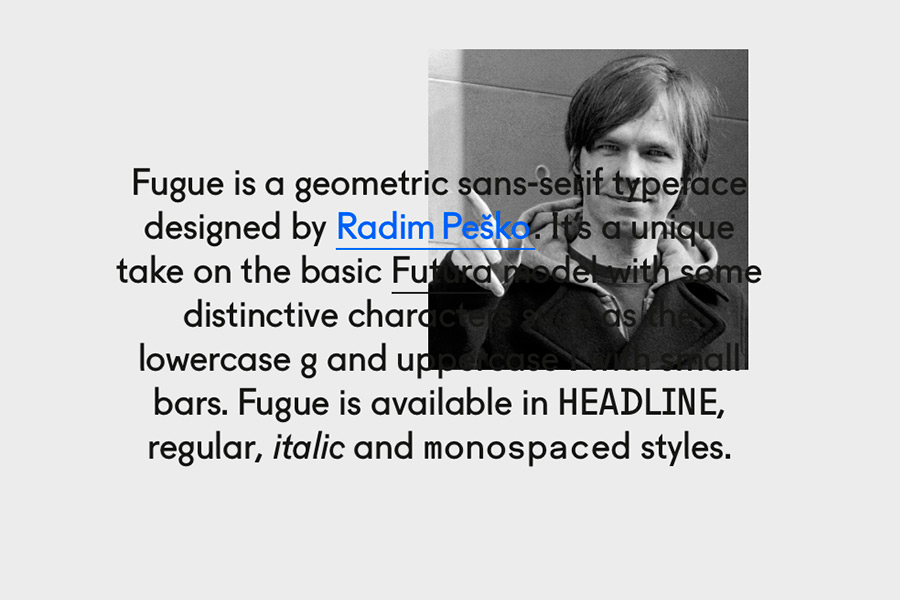 Webová prezentace písma Fugue českého typografa Radima Peško