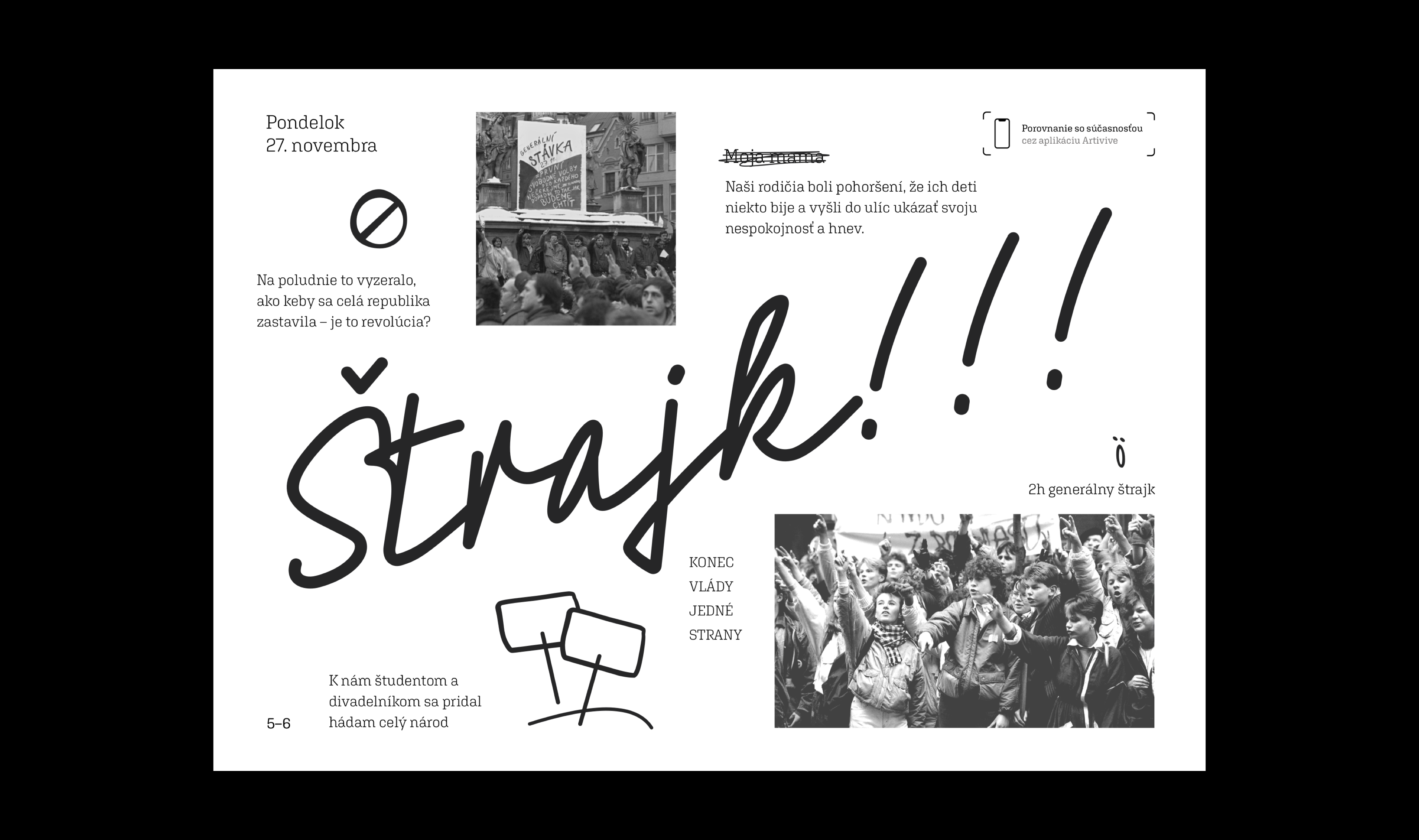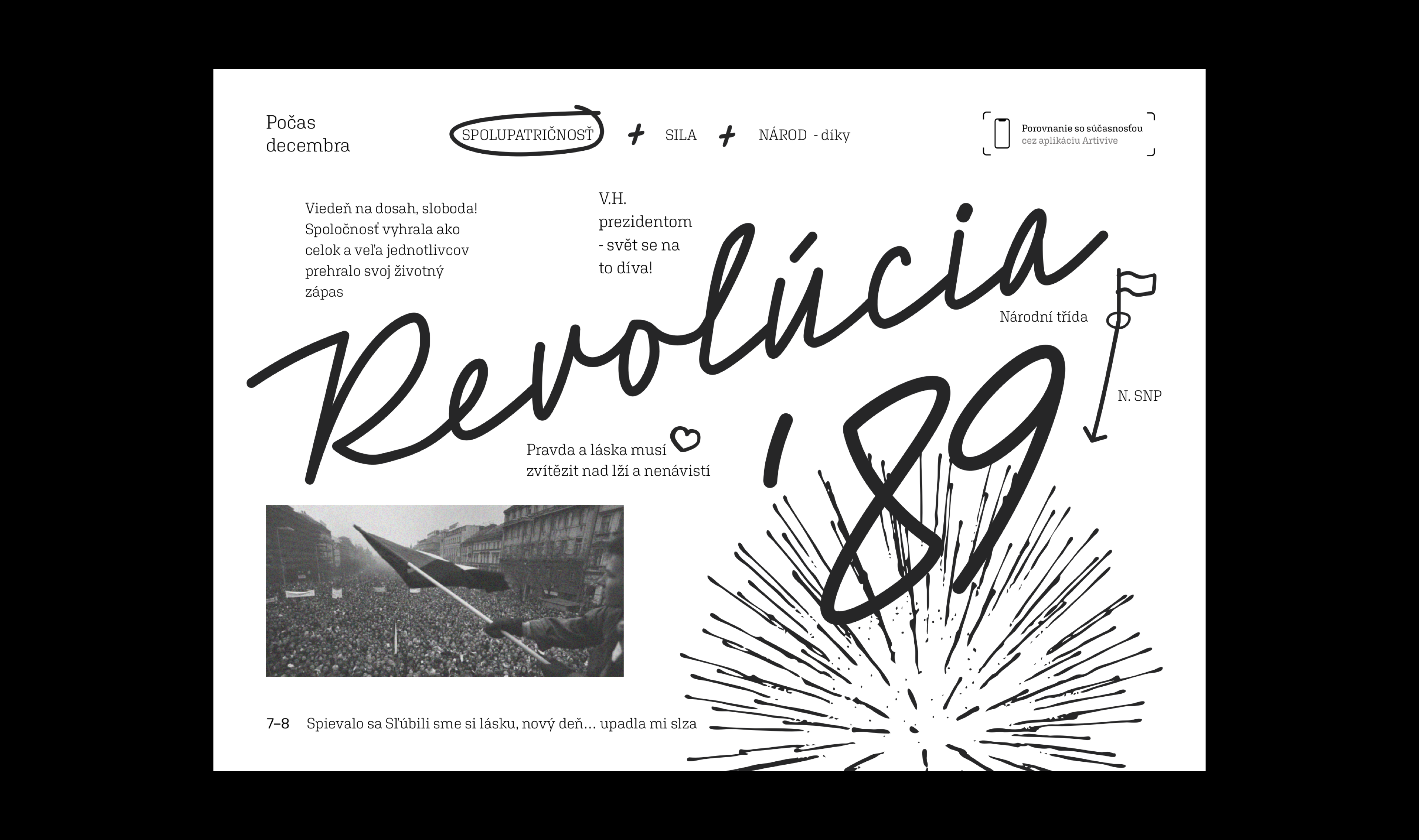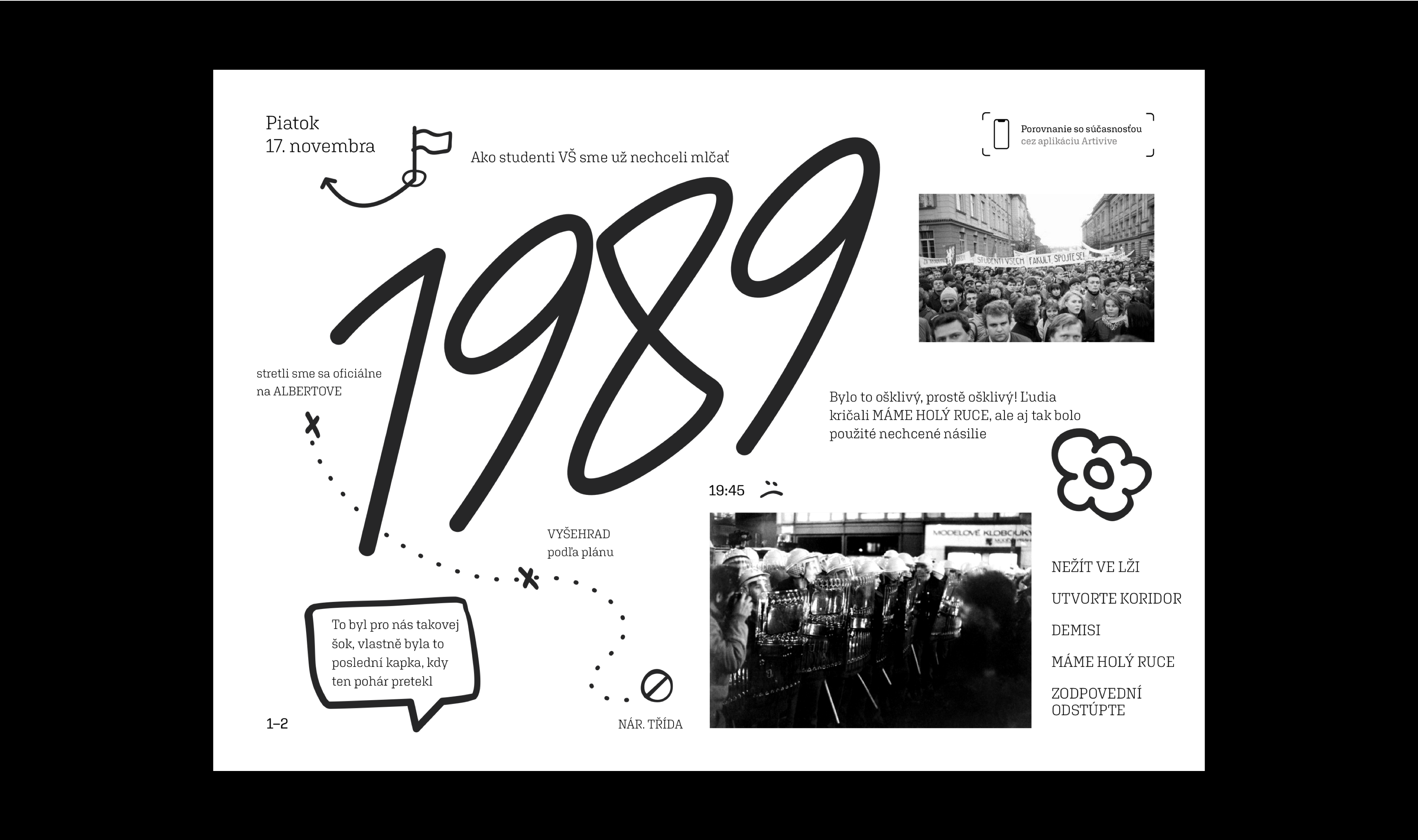 Samizdat, tzv. samovydávaná publikácia vo forme autentického denníka, z pohľadu umlčaného študenta chronologicky mapuje dôležité míľniky. Má tendenciu pripomínať dôležité udalosti počas nežnej revolúcie inou formou a zároveň cez AR zobraziť zmeny, ktoré sa po revolúci udiali.