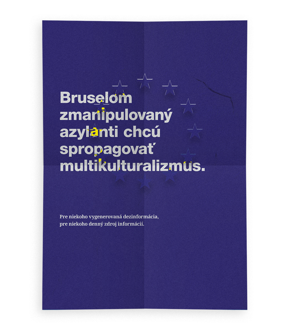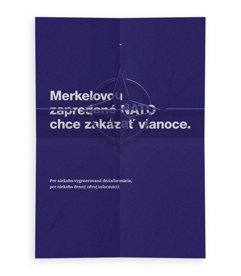 Séria kritických plagátov poukazuje na problém hoaxov a falošných správ, ktoré majú v súčasnosti veľký dopad na demokratické krajiny a ich stabilitu. Extrahovaním najčastejšie využívaných pojmov slovenskej dezinfoscény som vytvoril generátor jednoduchých hoaxov, ktoré som umiestňoval na jednotlivé plagáty a dopĺňal príslušným symbolom. Touto cestou som chcel poukázať na ich častú nelogickosť, jednoduchosť až nezmyselnosť konštrukcií, ktorou však dokážu oslovovať nekriticky premýšľajúce vrstvy ľudí.