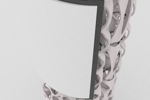 V rámci zadání jsme měli ztvárnit P.O.P. systémy novým, nezaběhnutým způsobem. Organické tvarování vychází z parametrického designu pomocí algoritmů. Pro toto konceptuální řešení se počítá s využitím nejnovějších materiálů jako jsou polymery s tvarovou pamětí, ohebné e-ink displeje a tablety.