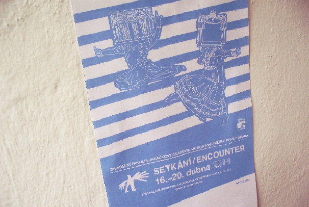 Pri tvorbe svojim návrhov (v ktorých centre stojí herec, s divadlom namiesto hlavy) som vychadzala zo skutočnosti, že ide o stretnutie ľudí (študentov divadelných škol), ktorých spája láska k divadlu - majú divadla "plnú hlavu" hoci sa jednotlivé javiská a opony líšia (podobne sko tváre ľudí), slúžia všade, v každom kúte sveta, k rovnakému účelu - poskytujú možnosť zachytiť a pochopiť existenciu človeka v celej jeho šírke - umožnujú ľuďom nájsť odpovede na otázky, ktoré sú zároveň témou festivalu KDO, KDY, KDE, PROČ ... BÝT? prostredníctvom divadla, podobne ako ľudská tvár prostredníctvom mimiky môžu herci vyjadrovať ľudské pocity a emócie a to bez ohľadu na to, z akej kultúry pochádzajú - umožuju im teda rozumieť a pochopiť sa navzájom aj bez slov.