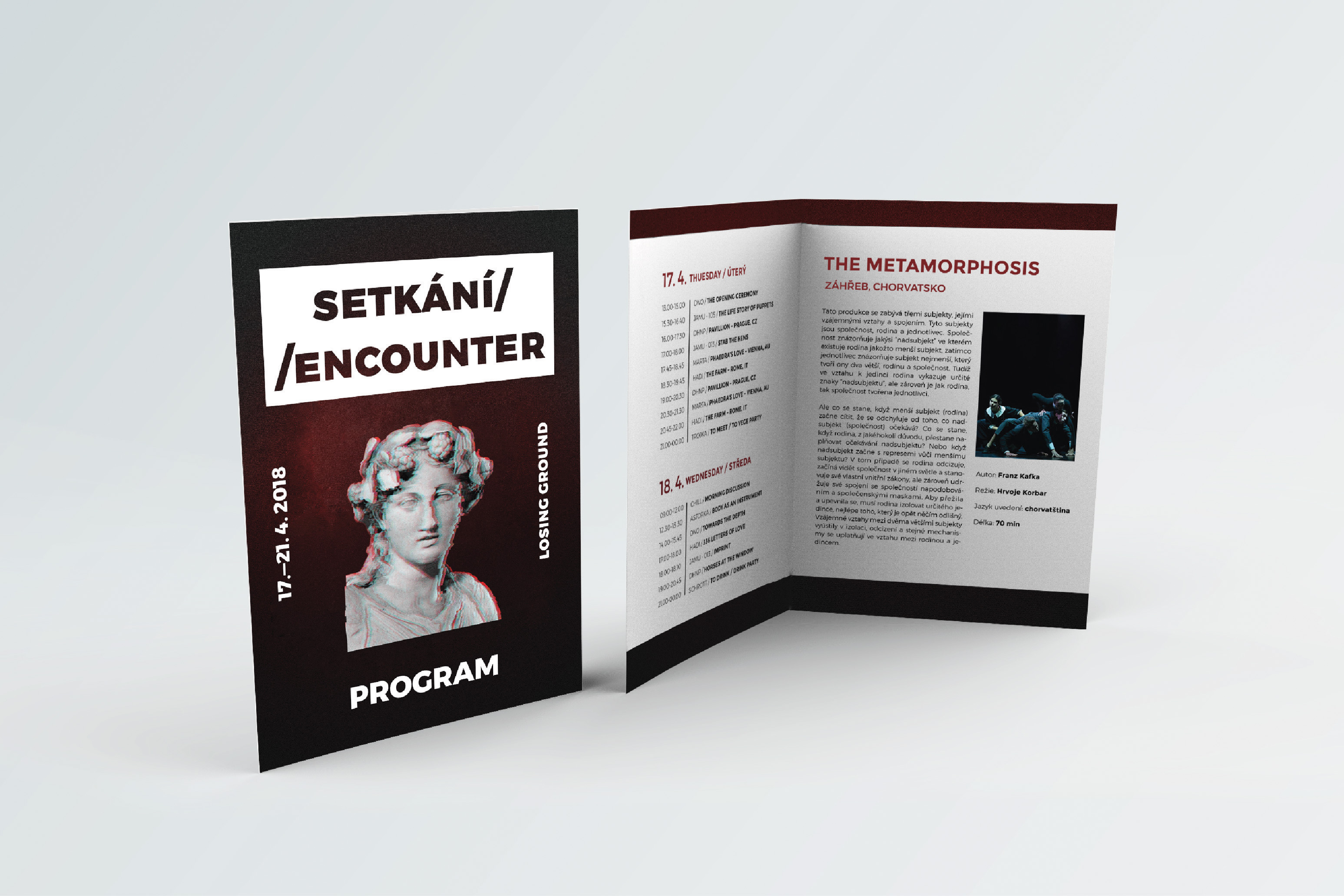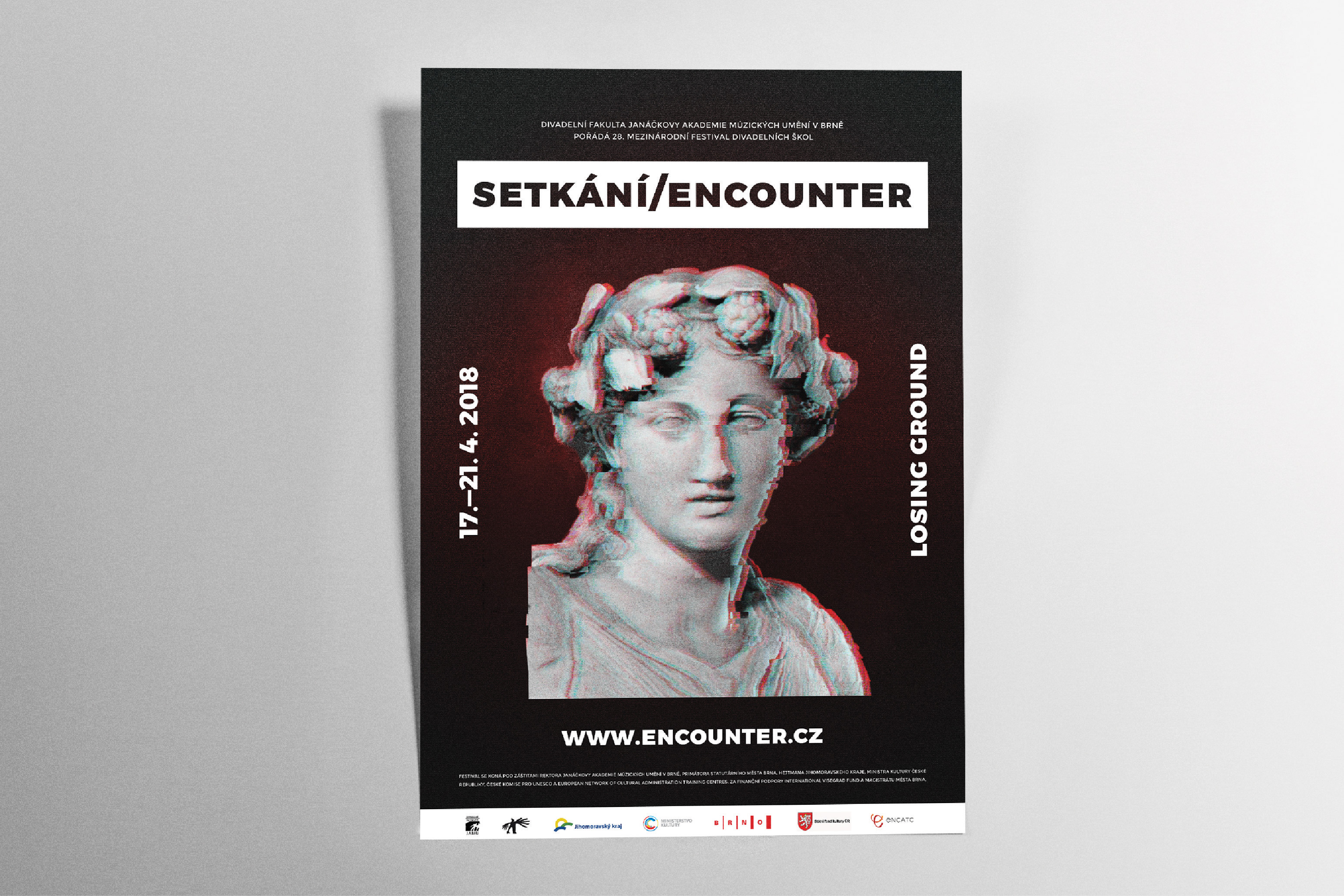 Vizuál pro divadelní festival Setkání/Encounter - Losing ground. Vychází z kombinace starých a nových prvků, kdy historii zastupuje řecká socha bohyně Thálie (múzy divadelnictví) a součastnost se odráží v digitálním šumu = závada, symbol ztráty.