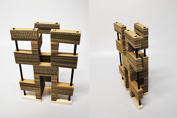 Spojením dvou typů škrabadel se dají skládat různé variace. Práce související s diplomovou prací, ověření stability a proporcí.