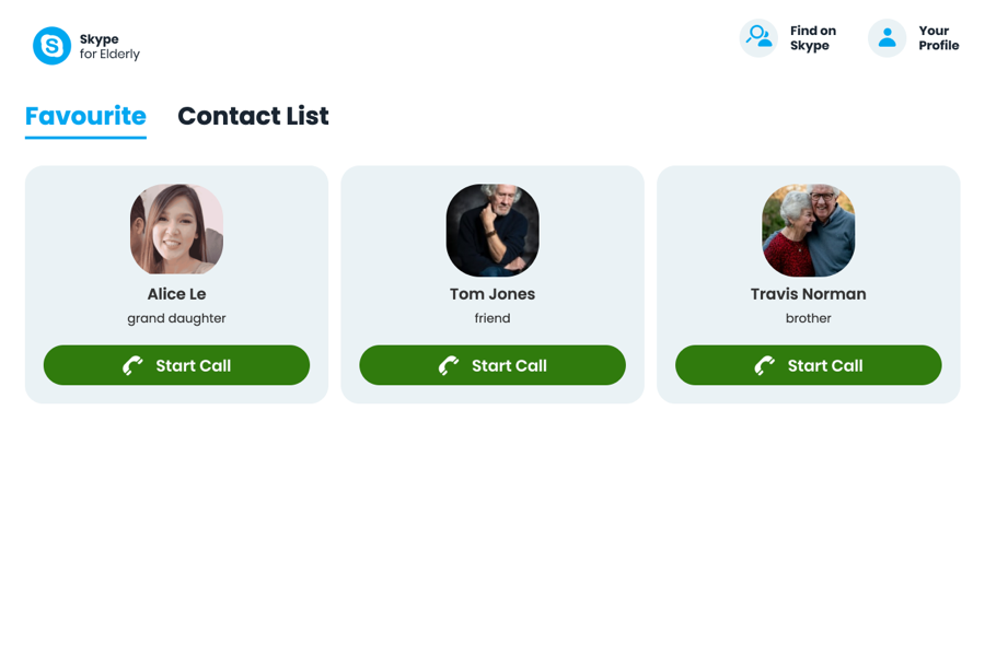 Sociálny kontakt je veľmi dôležitý, či už pre ľudí v produktívnom veku ale aj pre starších ľudí, ktorí často žiju osamote. Aktuálna situácia vo svete tento problém ešte viac "okryla" a viac naň upozornila. Práve preto som sa začal zamýšlať nad tým ako zefektívniť komunikáciu starším ľuďom pomocou digitálnych technológií. Do mojej cielovej skupiny som zahrnul ľudí, ktorí nemajú absolutne žiadne skúsenosti s modernými dig. technológiami. V mojom riešení som nevymýšlal nič nové, snažil som sa využiť technológie, ktoré poznáme ale upraviť ich pre potrebu starších ľudí. Tak vznikol projekt Skype for Elderly.