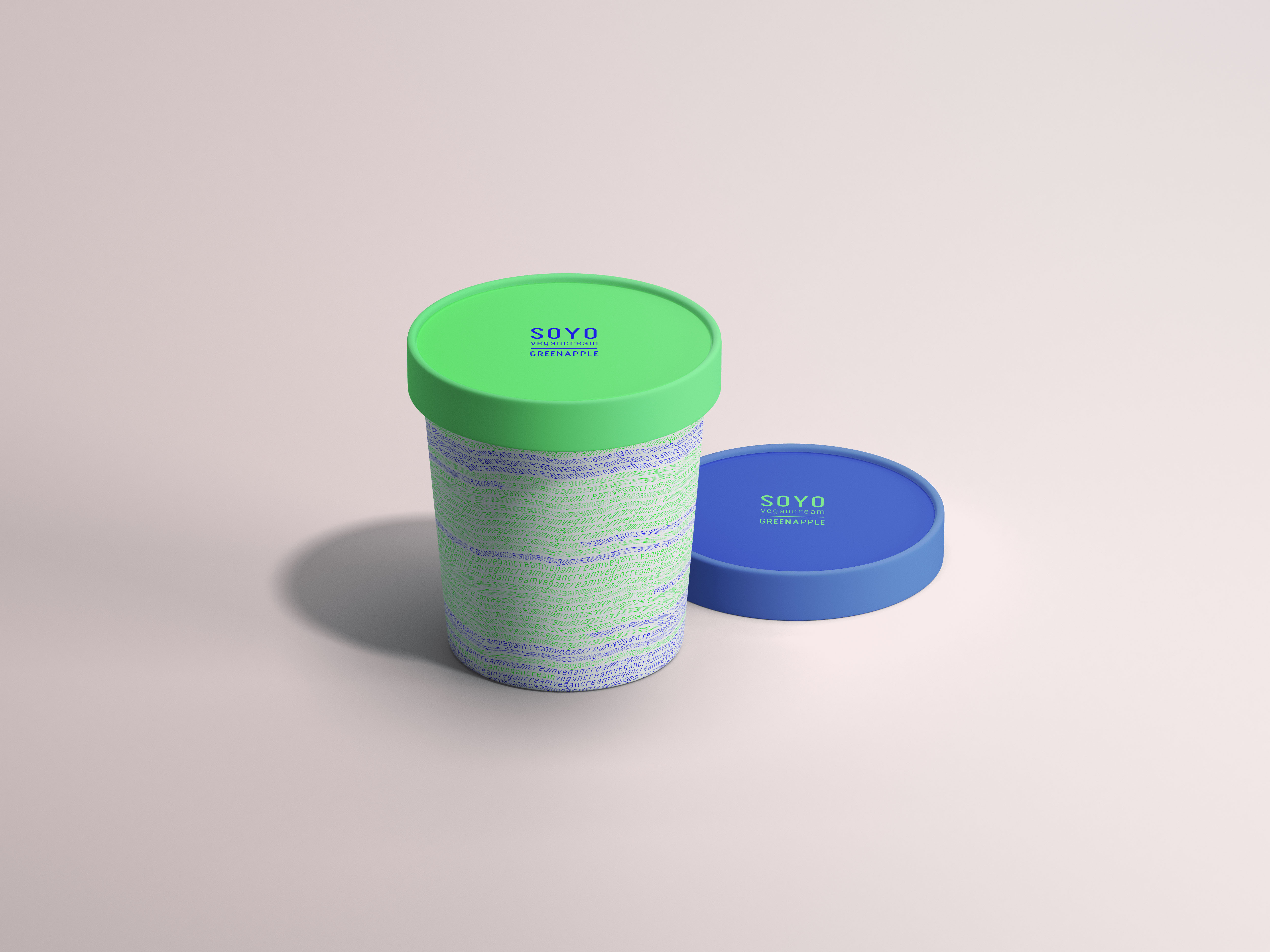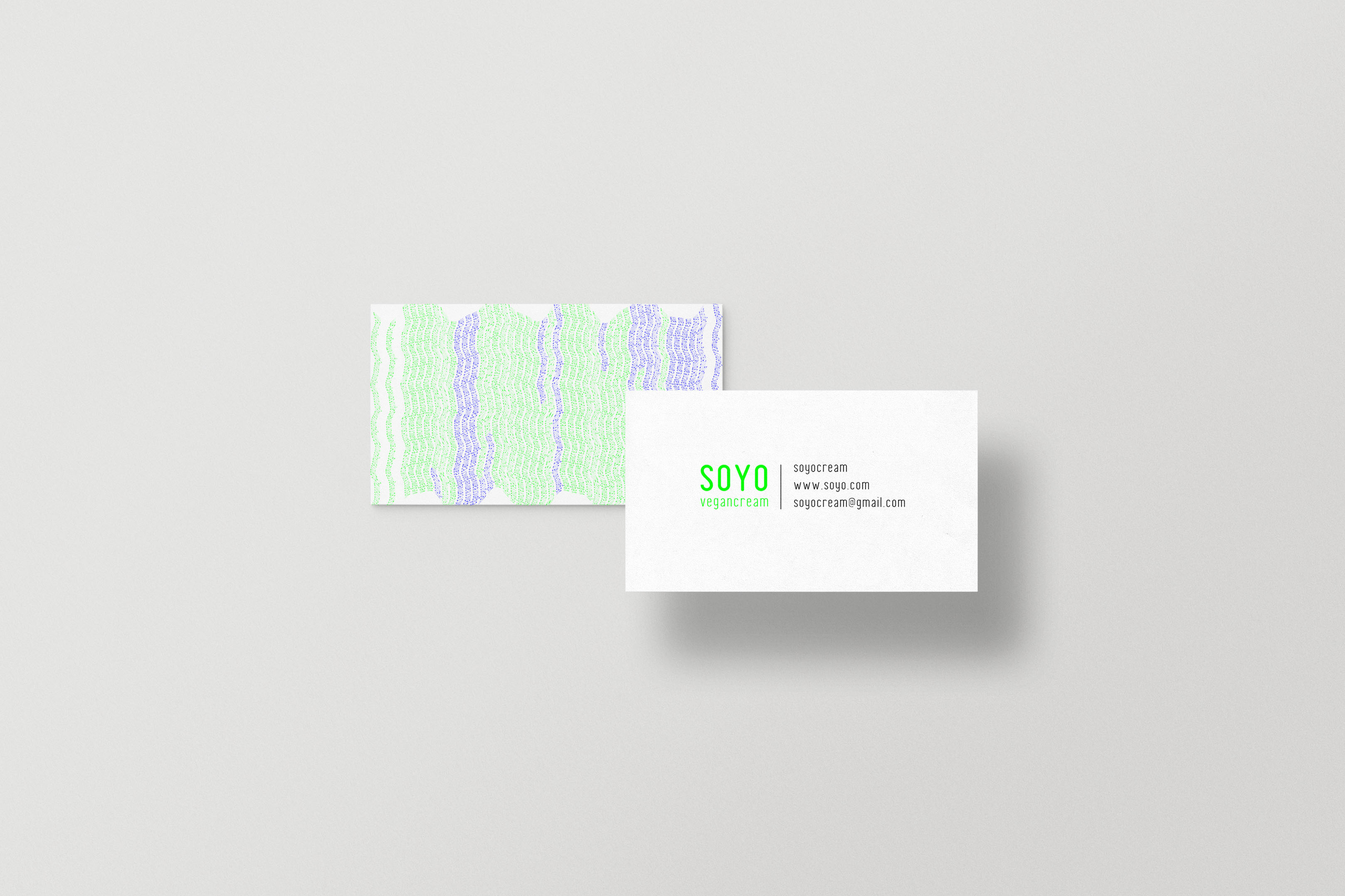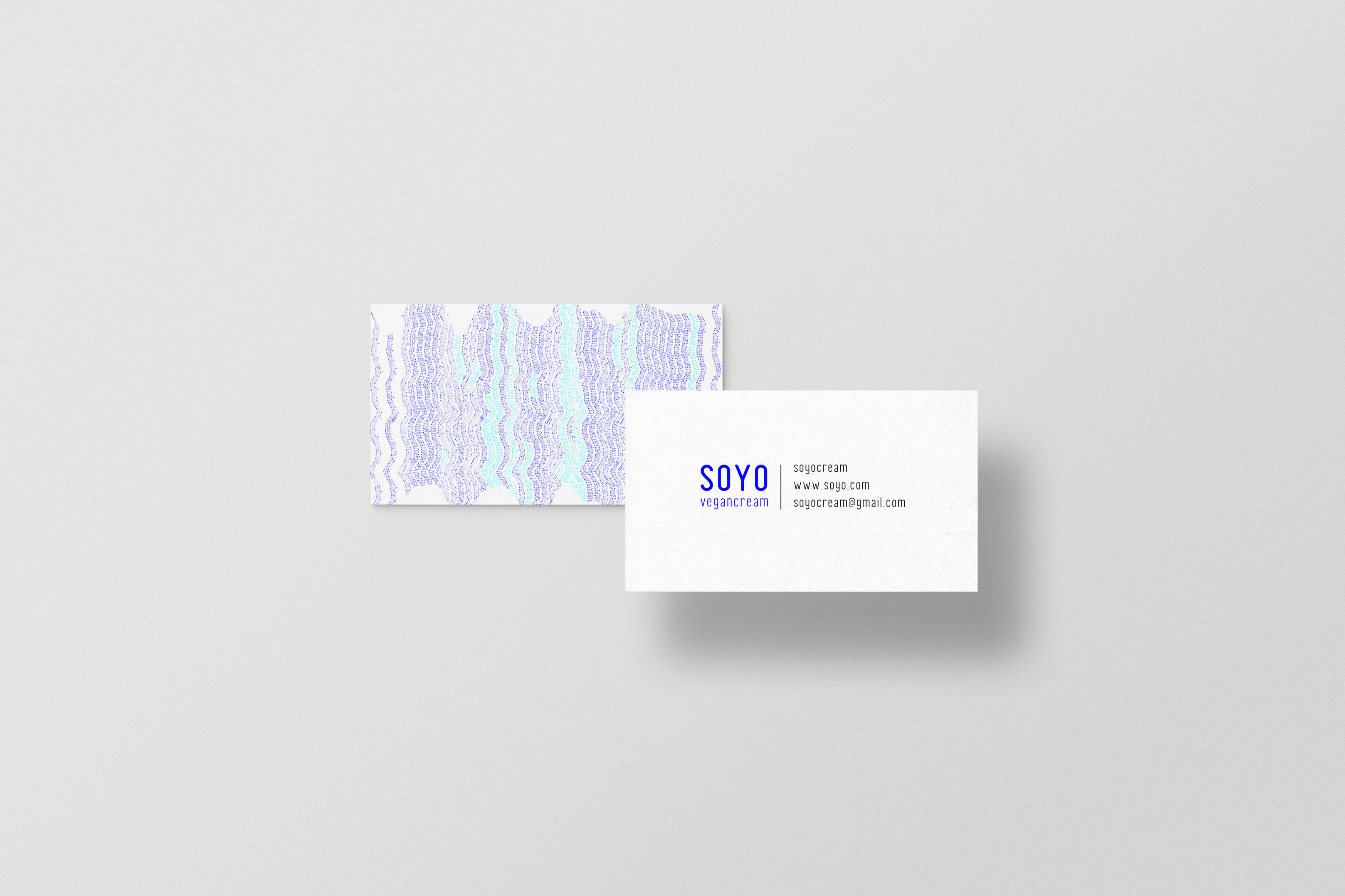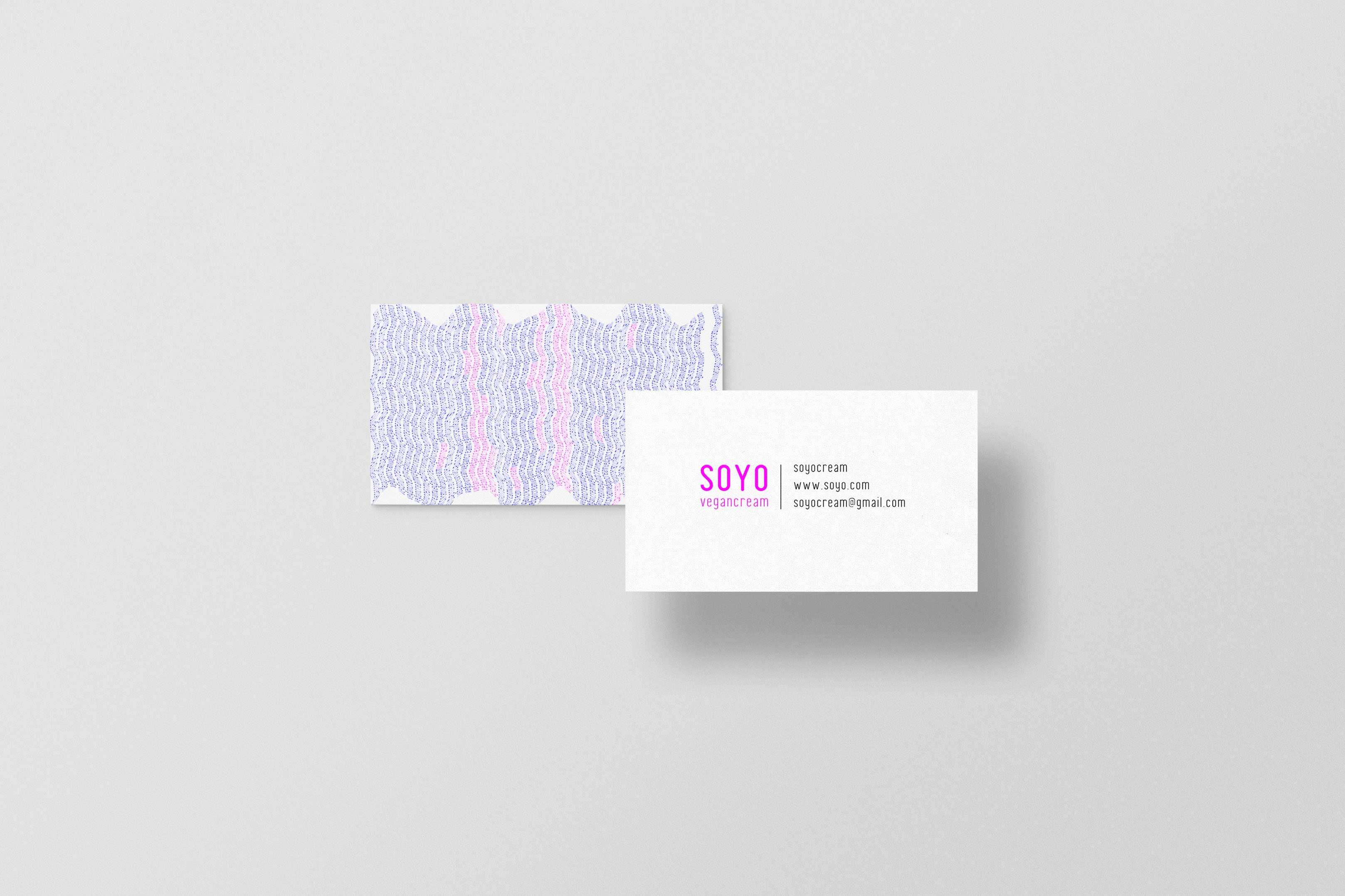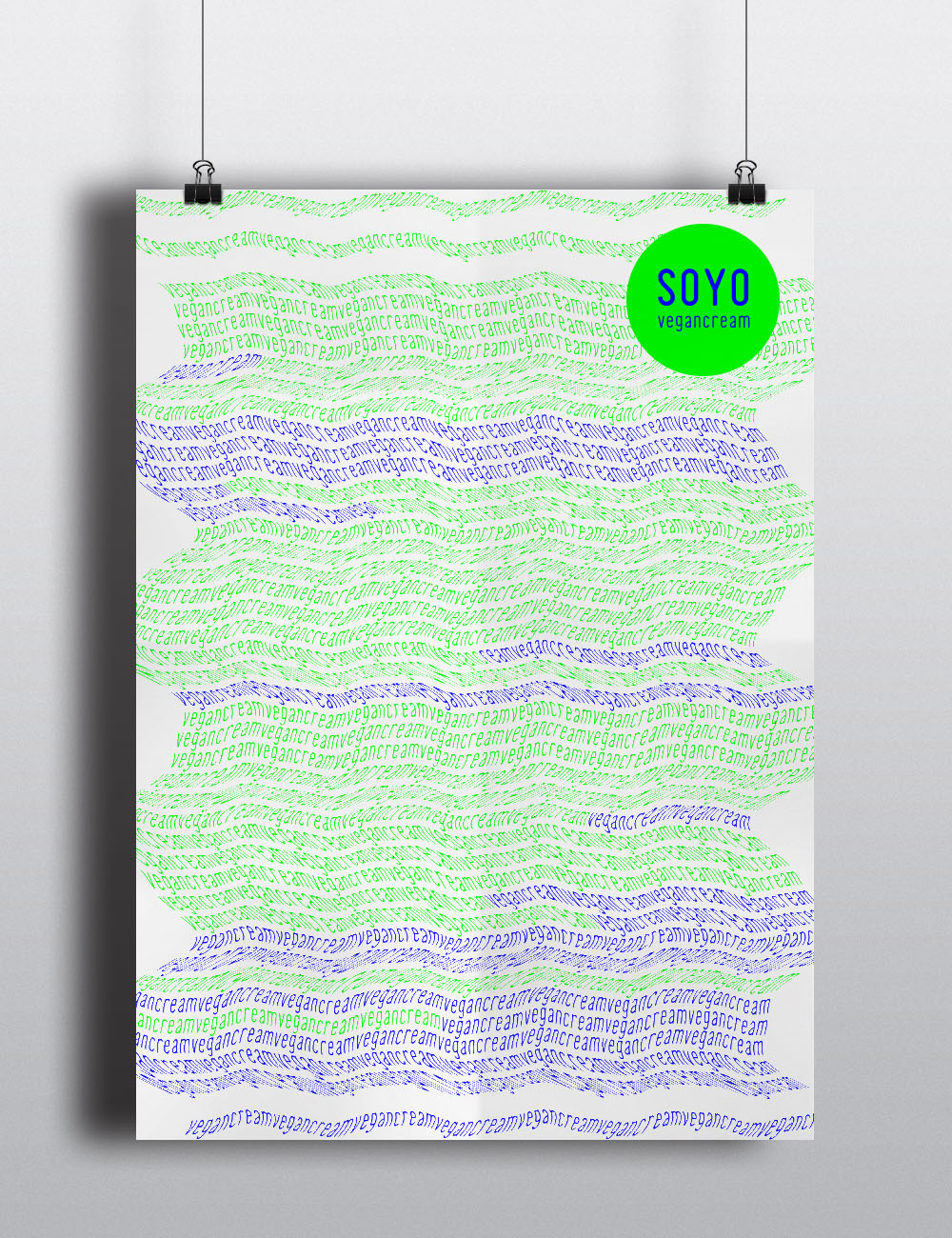 Návrh typografického obalu a vizuálneho štýlu. Séria troch typografických obalov pre zmrzlinu SOYO. Obal sa skladá z deformácie typografických znakov. Deformácia písma znázorňuje topiacu sa zmrzlinu a farebnosťou ktorou sú obaly odlišné, určuje príchuť danej zmrzliny. Ako propagácia značky SOYO je vytvorená séria typografických plagátov a vizitiek.