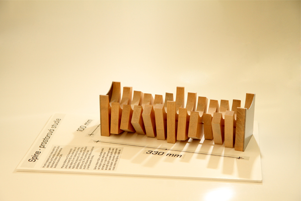 Úkolem bylo vytvořit interiérový/exteriérový designový prvek vyrobitelný z plochého materiálu. Vytvořil jsem mísu tvořenou prvky z březového dřeva. Při výrobě modelu byla použita technologie vodního paprsku.