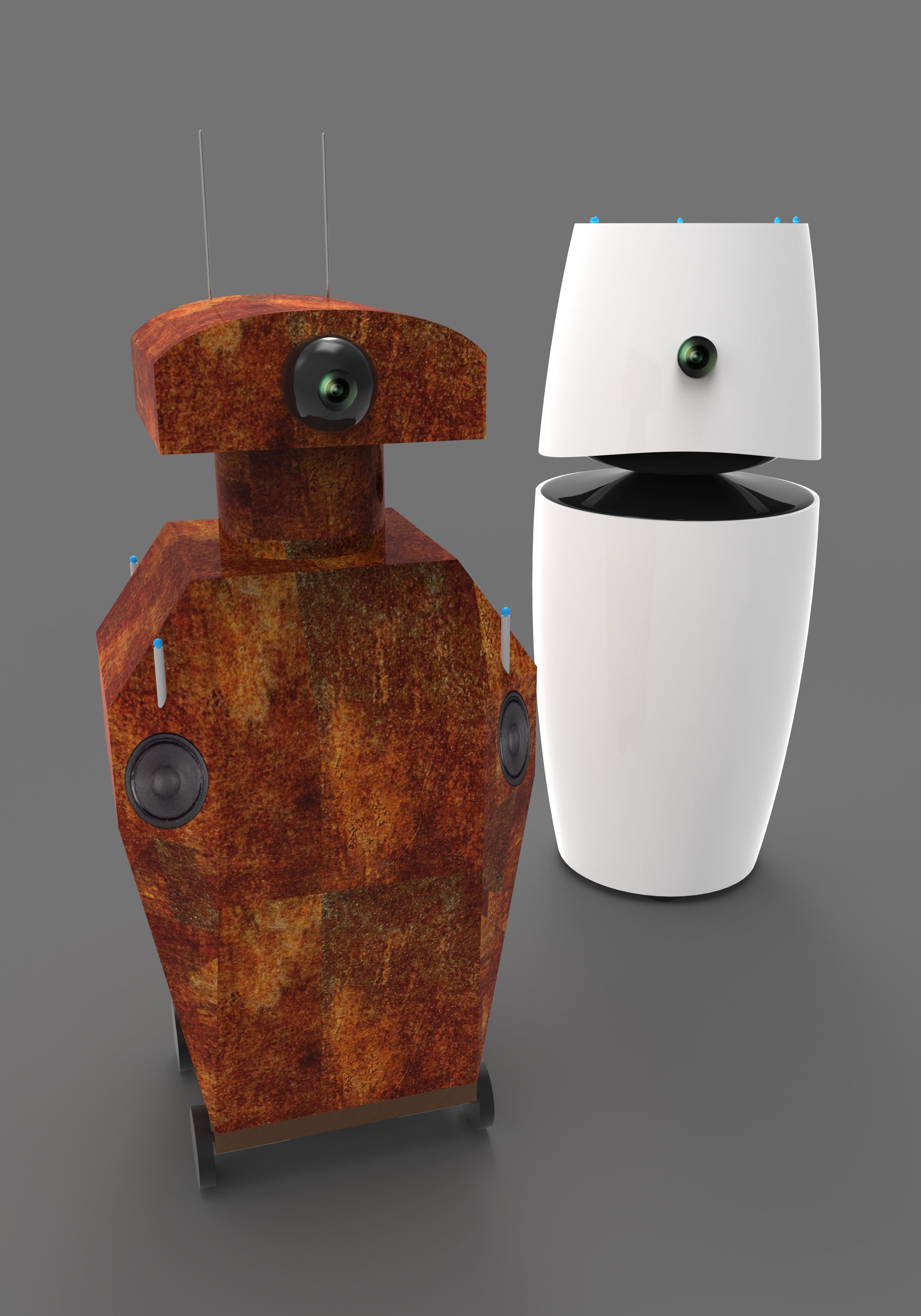Návrhy dvou robotů na odlišných podvozcích. První představující stáří se jménem Karel a druhý představující moderní sofistikovaný stroj s názvem Auanema.