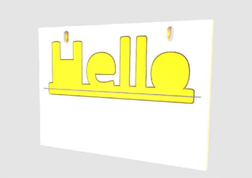 a v prípade potreby sa dá vyklopiť. Trojrozmerný nápis slúži ako vešiak na kľúče, tašky, kabáty alebo dopisy.